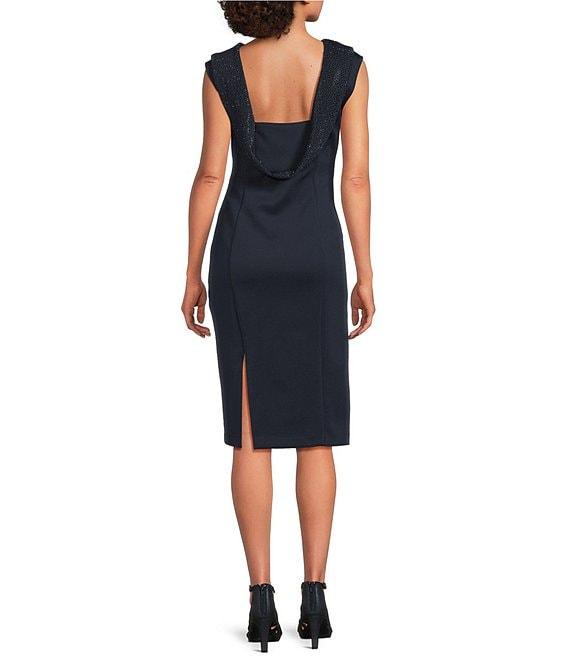 Calvin Klein Scuba Beaded Boat Neck Crepe Cap Sleeve Sheath Dress