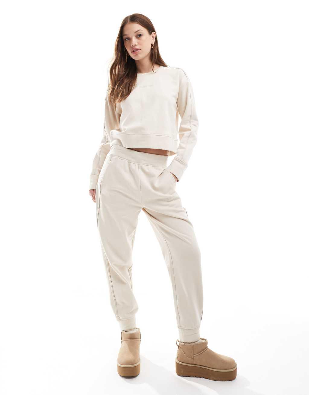 Calvin Klein Tonal Logo lounge crew neck sweatshirt in cream