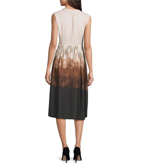 Calvin Klein Zip Front Round Neck Ombre Crepe Sleeveless Dress