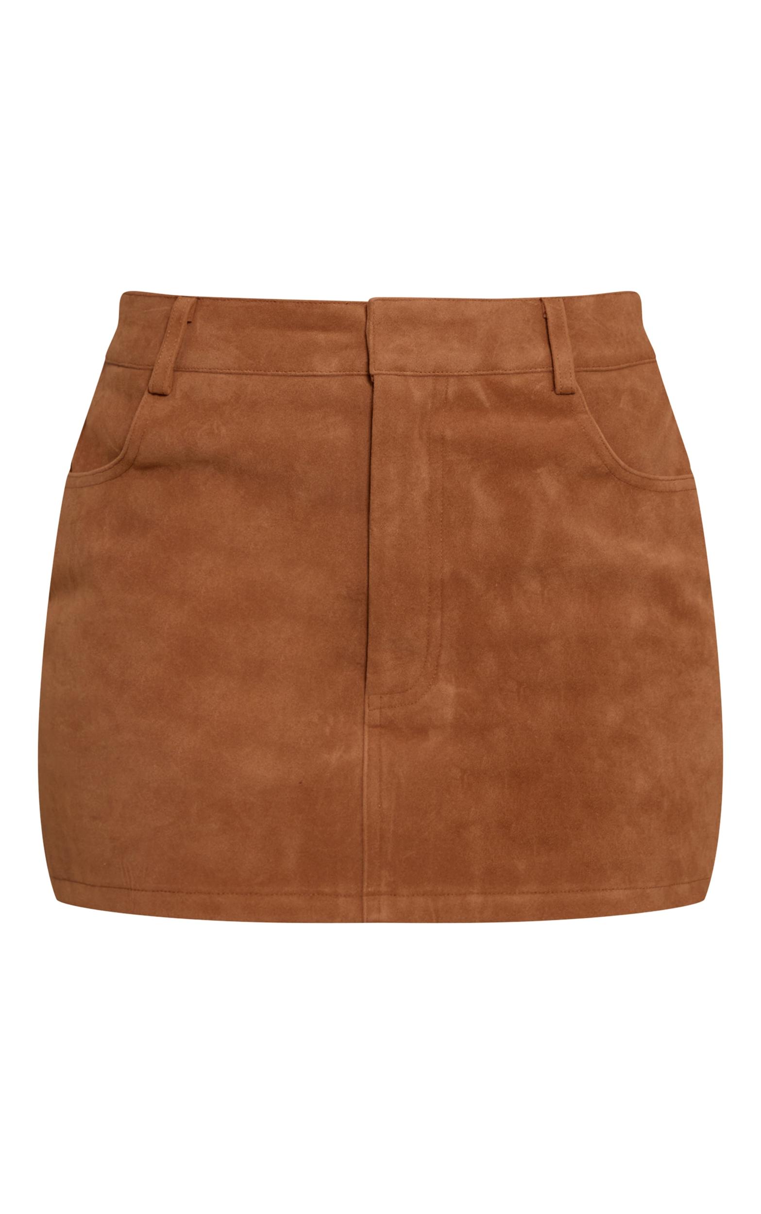 Every wardrobe needs that one piece that just *works*, and the camel suede pocket detail mini skirt is ready to deliver. This day-ready bottom boasts a sleek mini cut, complete with subtle front pocket detailing for an understated edge. Pair it with a crisp white blouse or a relaxed knit sweater for effortlessly cool styling. Finish your look with a pair of chic knee high boots and delicate gold accessories to own your aesthetic from day one.Length approx 33cm/13inch (Based on sample size US 4)Model wears size UK 8/ EU 36/ AUS 8/ US 4Model Height - 5ft 10inchp]:!mb-4inch>Brand: PrettyLittleThingCategory: BottomsProduct type: Mini SkirtColor: CamelMaterial: Faux SuedeOccasion: Day