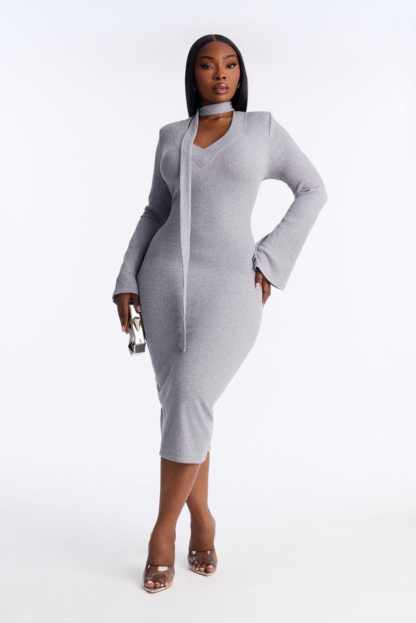 Available In Blue And Grey. Metallic Sweater Midi Dress Deep V-Neckline Long Sleeve Scarf Stretch Length Measured Flat = 47" Self: 40% Rayon 30% Polyester 15% Polyamide 10% Metal 5% Spandex Imported California Proposition 65WARNING: Cancer and Reproductive Harm - www.P65Warnings.ca.gov.