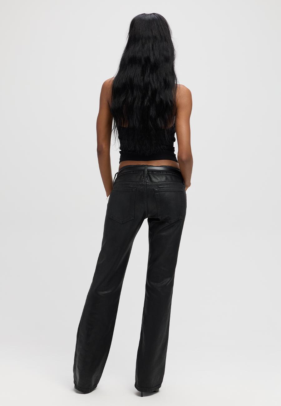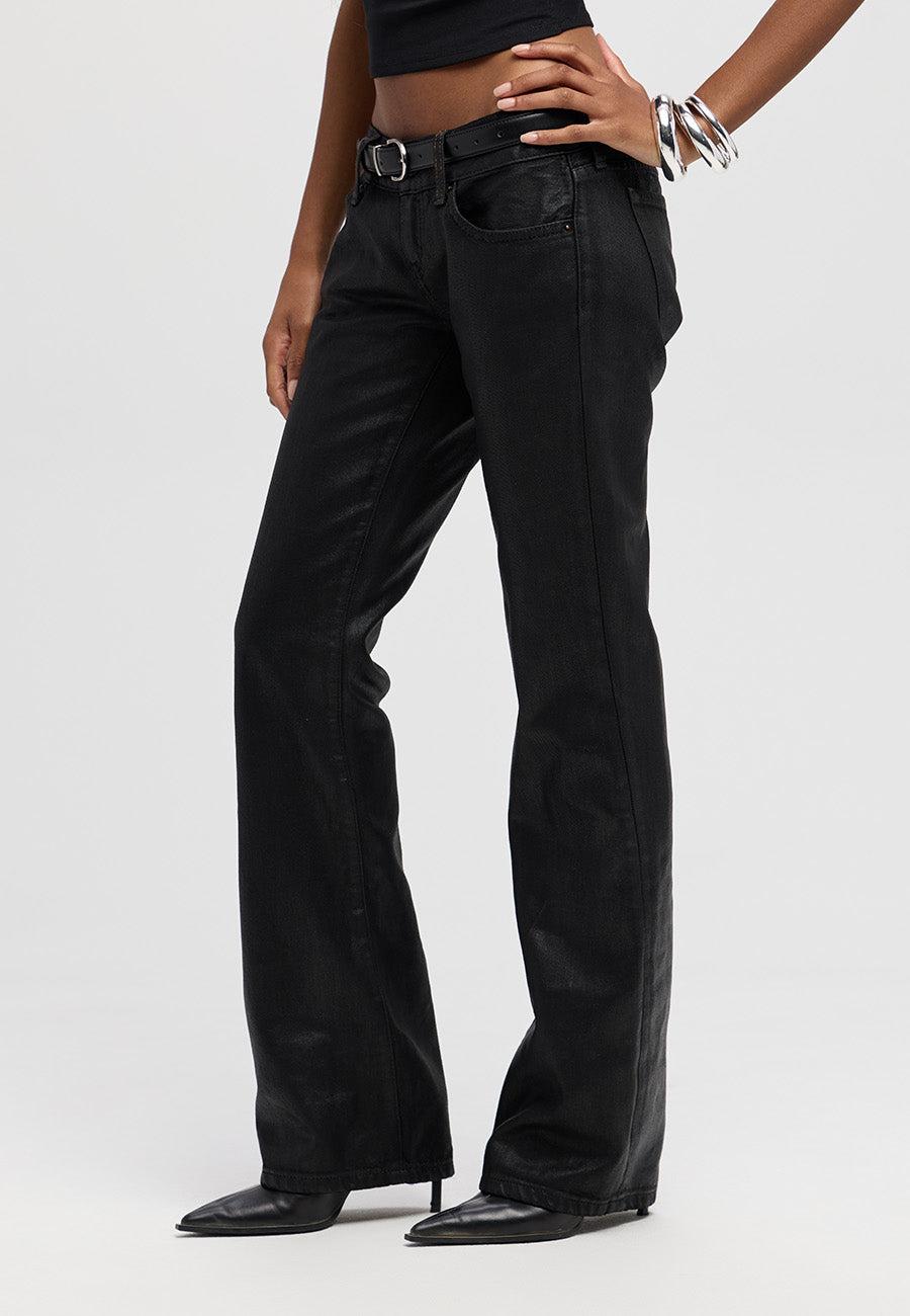 The Camille is a study in ’90s elegance with a modern edge. Sitting low on the waist, with a long, lean line that flows into a refined bootcut. Cut in our signature rigid denim and finished with a luxe waxed sheen, it brings a quiet drama that feels both effortless and iconic. Understated, sculpted, and endlessly chic, this is the jean that defines the collection.