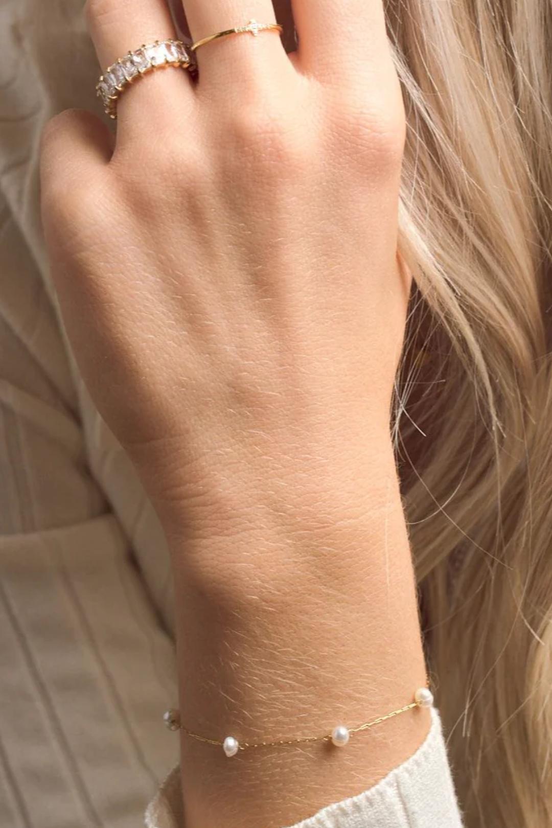 We are pleased to present the Camille Pearl Bracelet, a classic piece adorned with freshwater pearls. It's a waterproof jewelry that exudes timeless elegance. Elevate your outfit and jewelry collection with this instant purchase!