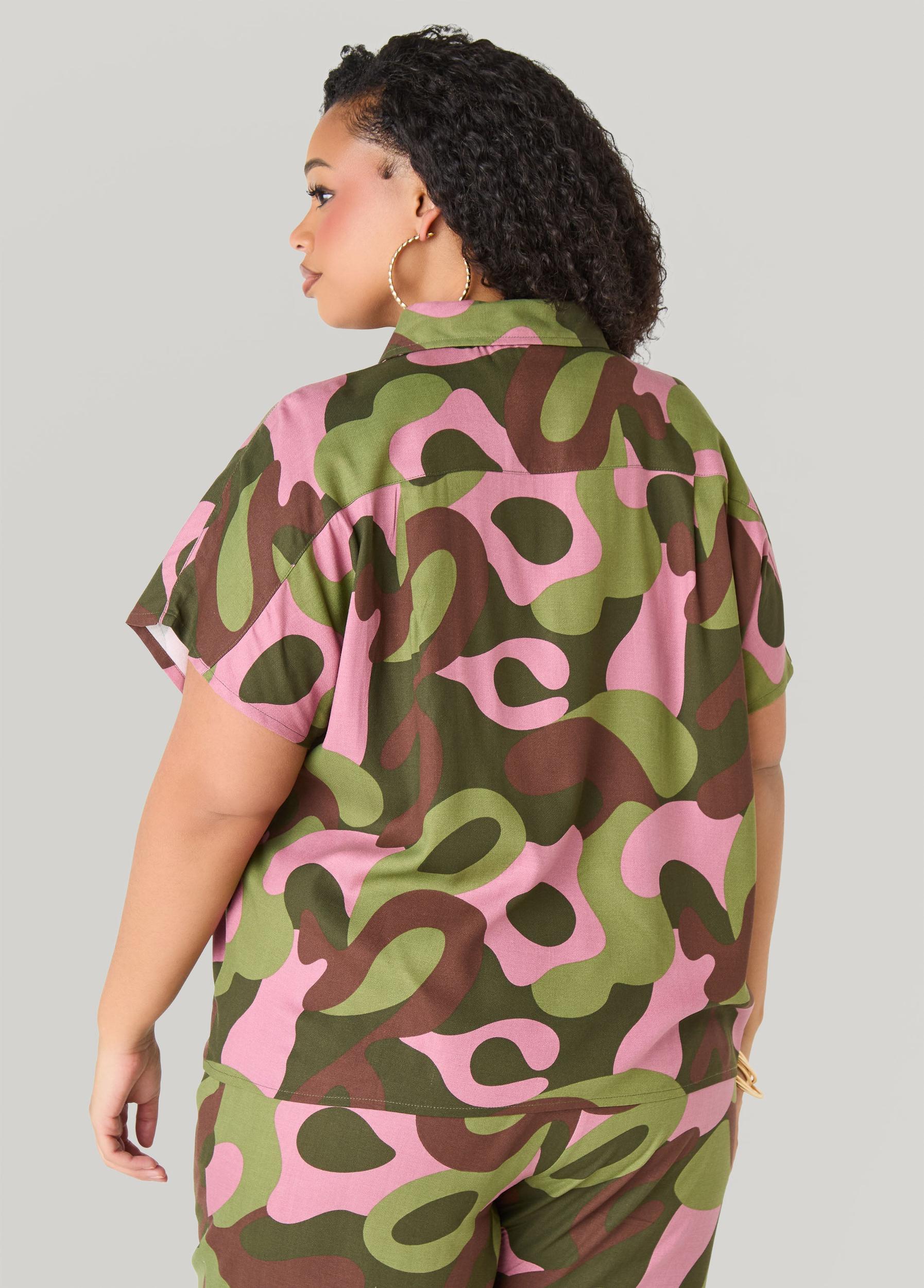 Camo, but make it cute. This twill shirt brings a fresh pop of pink & green with a front zip that keeps things easy and cool. Rock it with the matching pants for a two-piece look that hits with confidence and a little attitude.