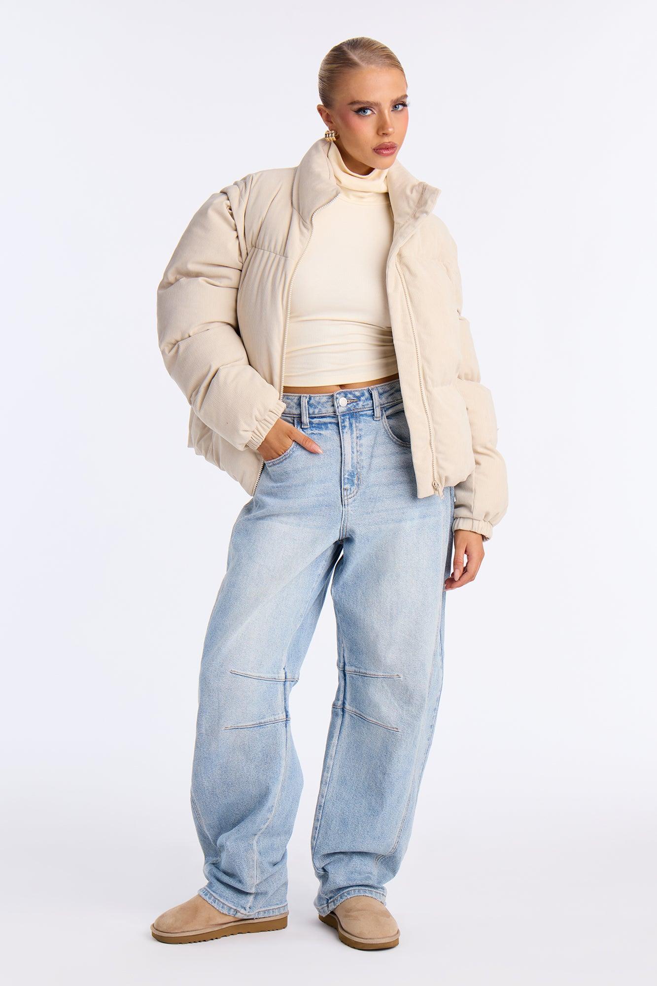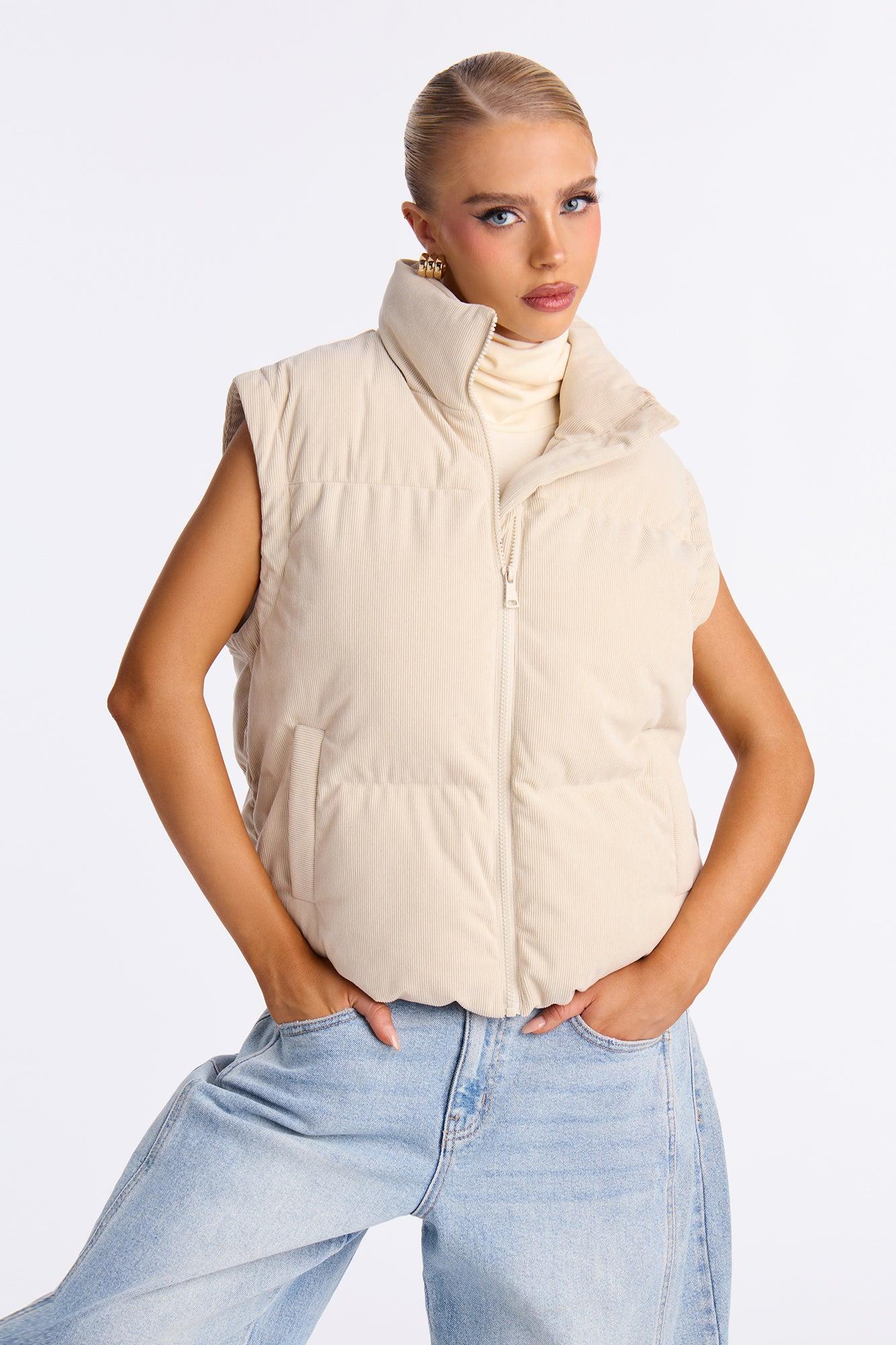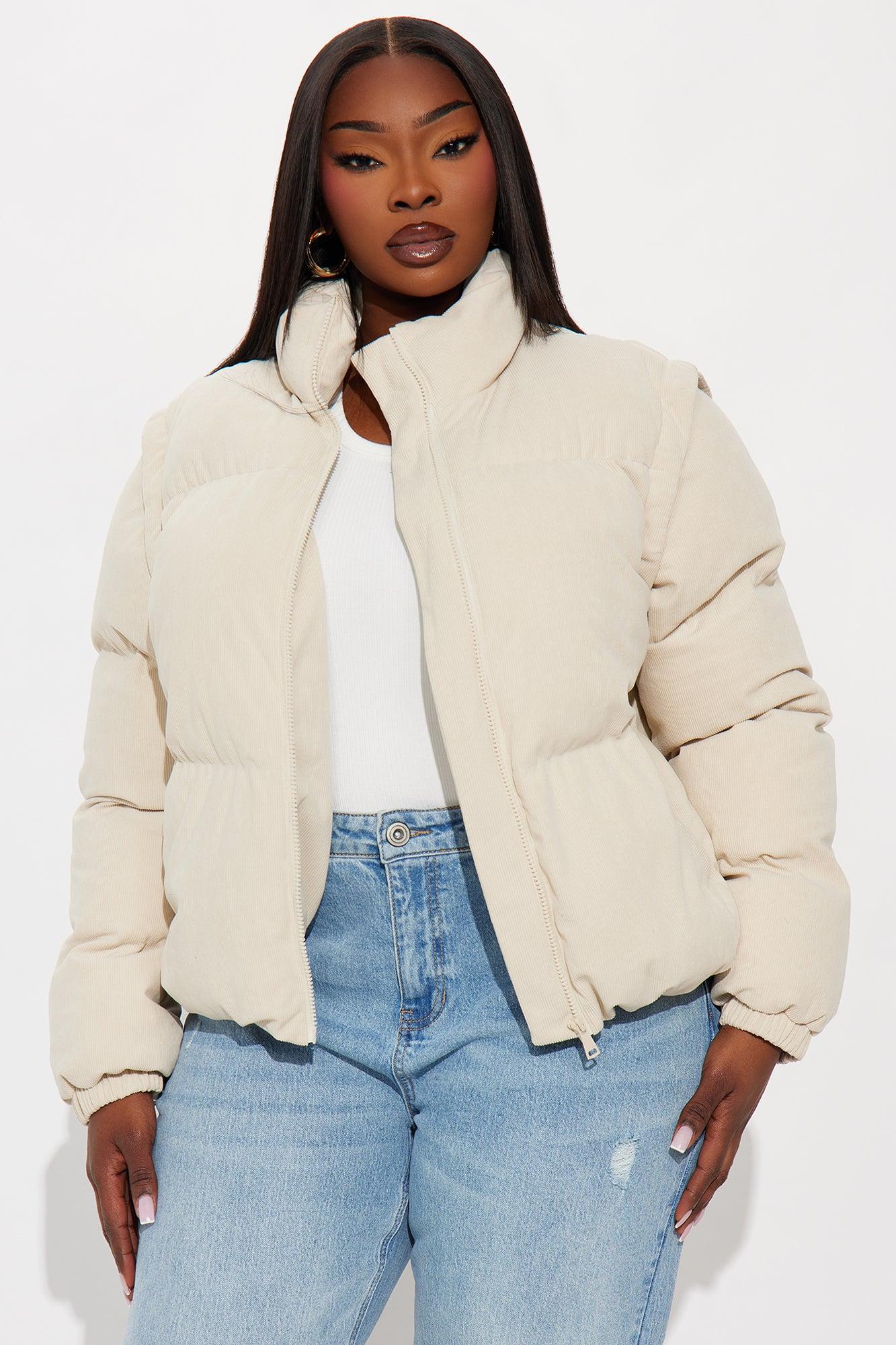 Available In Sand. Puffer Jacket Collar Long Sleeve Corduroy Full Zip Fully Lined Self : 100% Polyester Lining : 100% Polyester Filling : 100% Polyester Imported California Proposition 65WARNING: Cancer and Reproductive Harm - www.P65Warnings.ca.gov.
