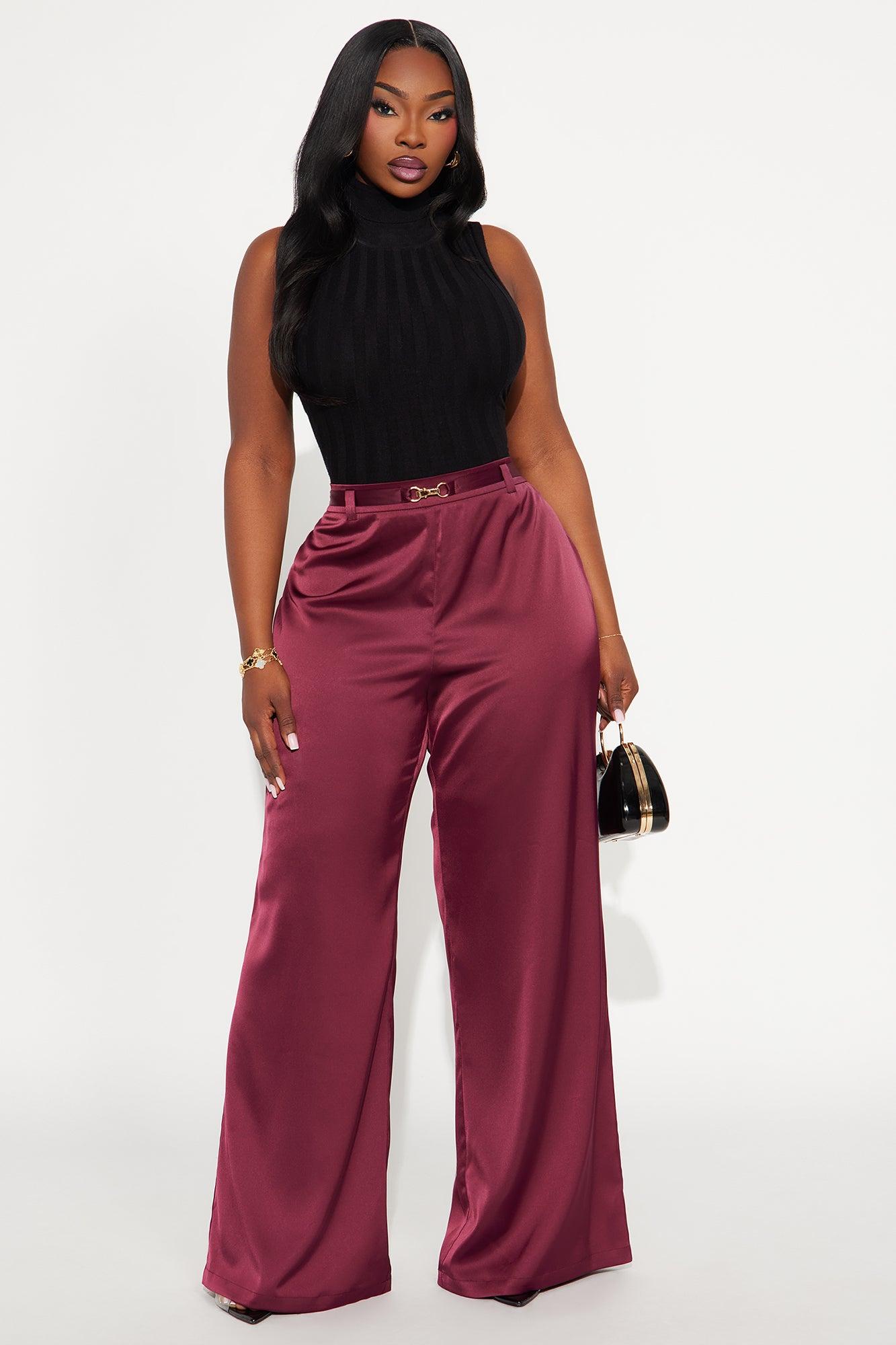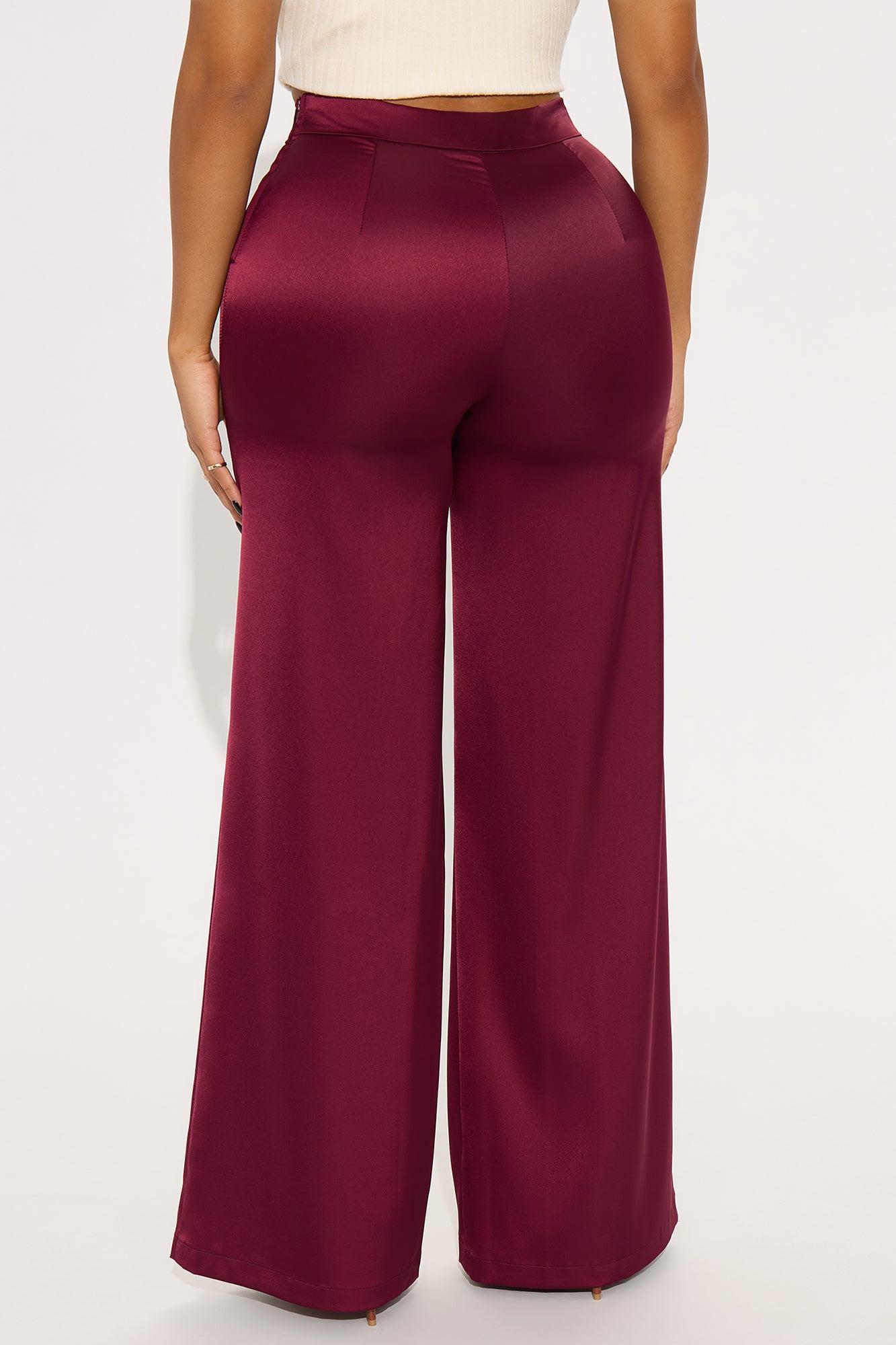 Can't Forget Me Satin High Rise Wide Leg Pant 33 - Burgundy Female