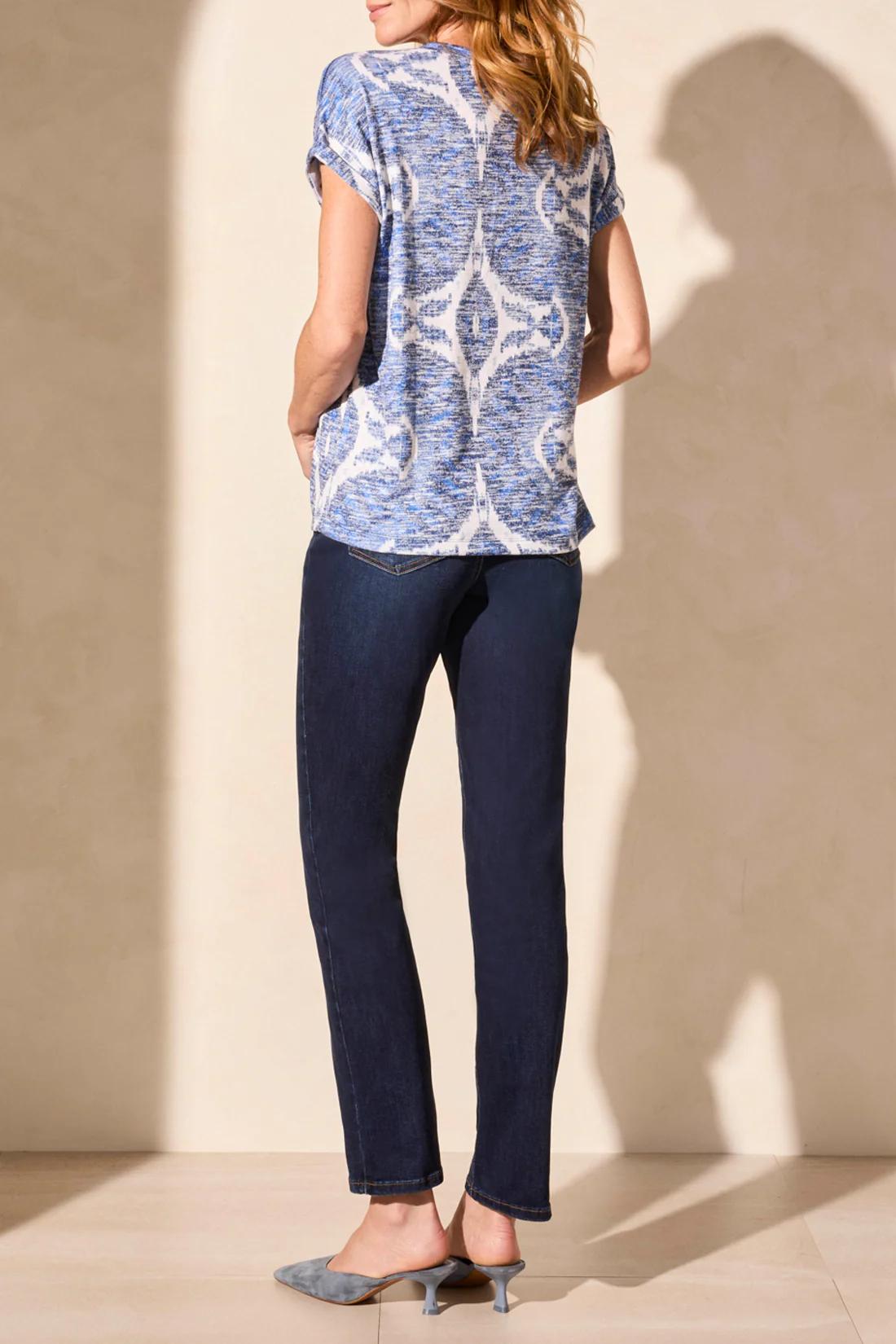 Tribal Cap Sleeve Knit Top w/Ladder Tape Detail Nautical