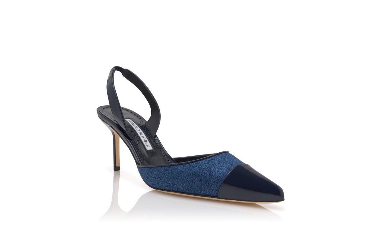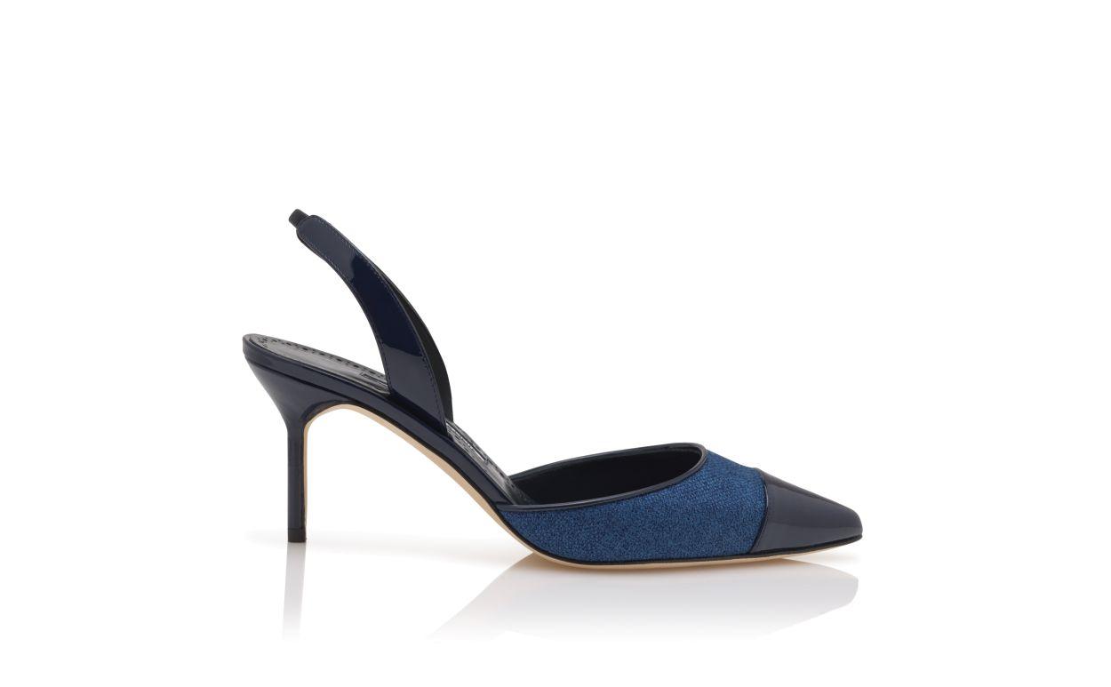 CAPSLI Navy Blue Linen Slingback Pumps