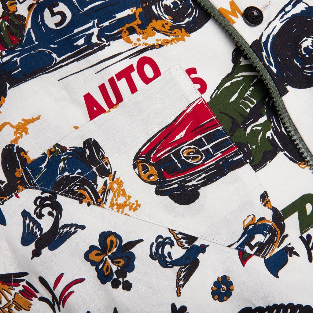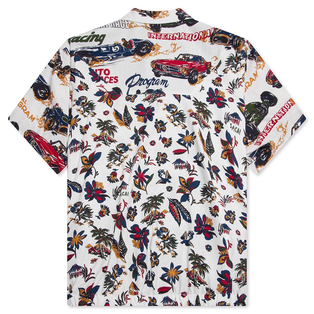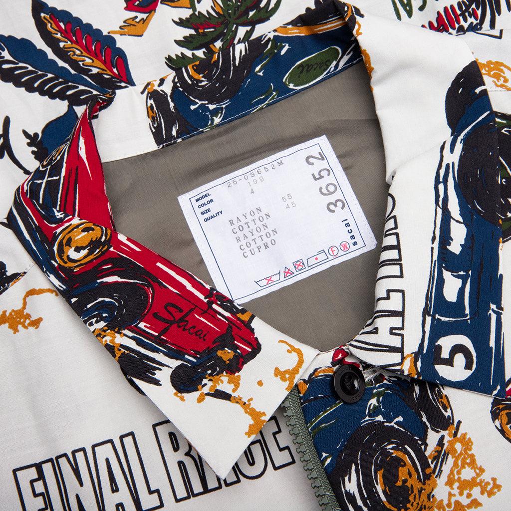 The Car Race Tropical Print Shirt from luxury brand Sacai elevates any look. Composed of Rayon and Cotton, this garment features a bold all-over racecar print. Some technical details include a button closure at the front and a classic collar. Custom buttons and additional Sacai branding completes the look. 55% Rayon/45% Cotton Button-up Classic collar All-over print Straight hem Custom buttons Style No: 25-03652M-199