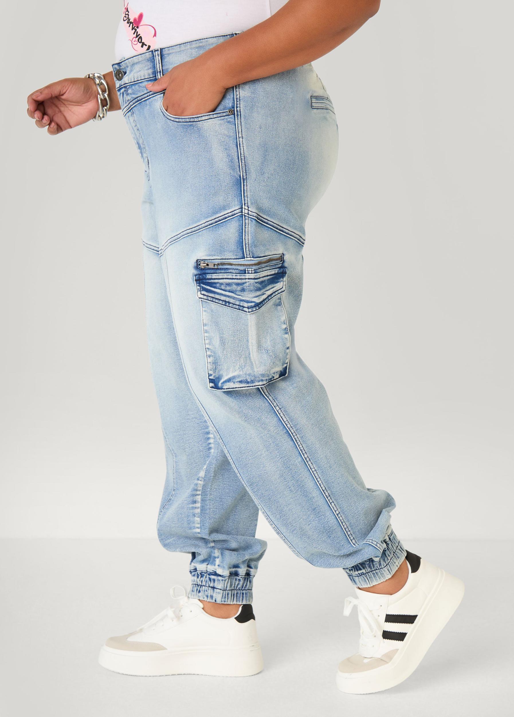Plus Size Denim Cargo Joggers Ashley Stewart