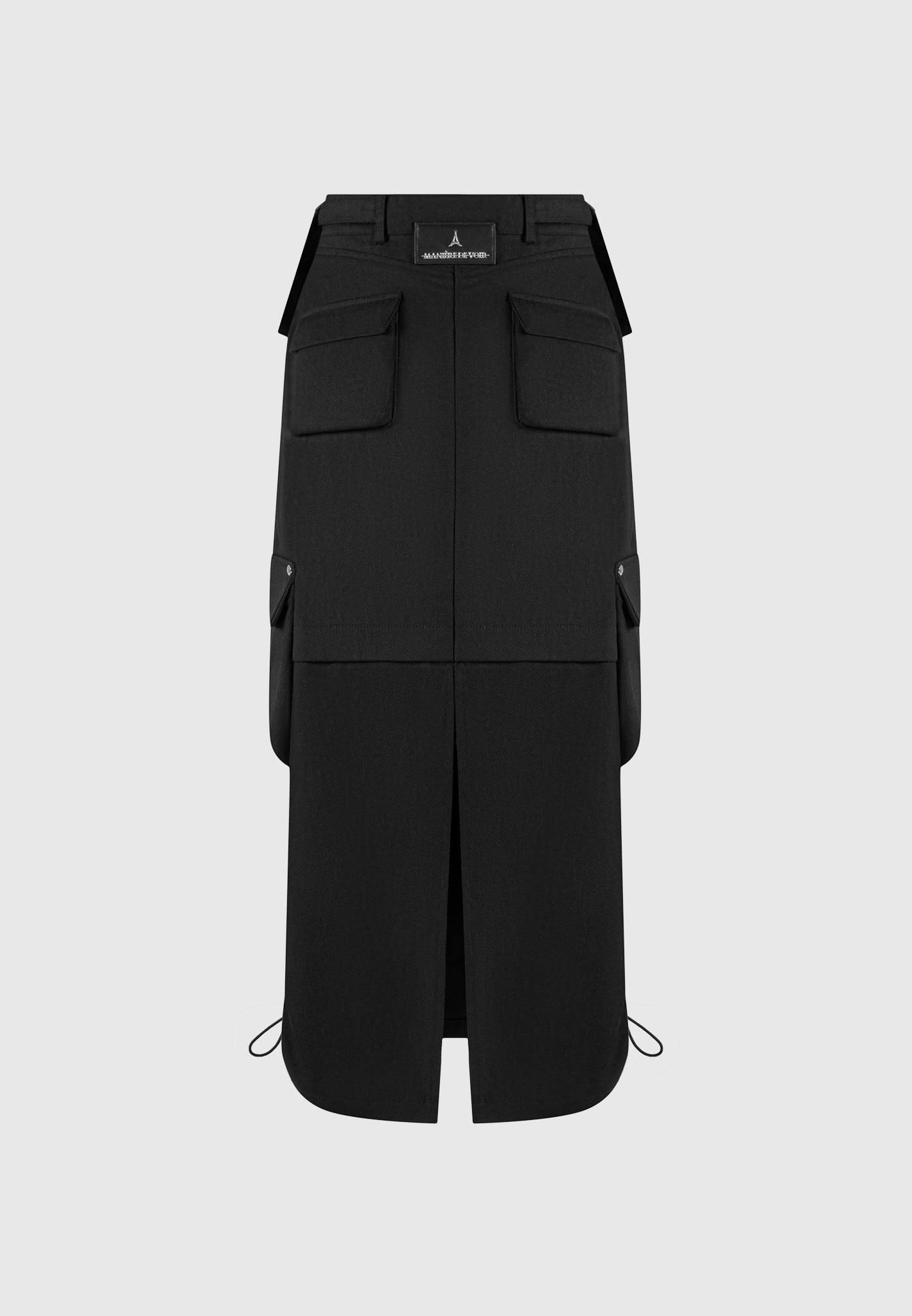 The Cargo Midaxi Skirt is designed to flatter your curves with a chic, high waisted look. It’s perfect for work or play with a stylish yet comfortable design. It's a timeless piece for your wardrobe. High Waisted Midaxi Skirt Silhouette Cargo 3D Pockets Side Slip Pockets Internal Waistband Adjusters Bungee Cords on Side Vegan Leather Manière De Voir Patch 100% CottonAlways check the care label for wash instructions.