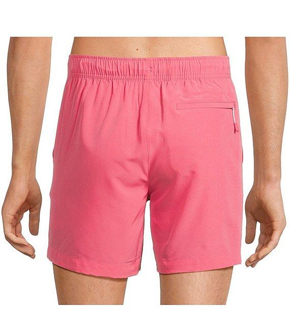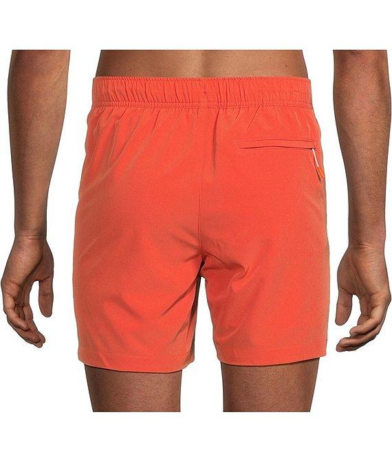 From Caribbean, this solid trunk features: Waveliner® comfort stretch boxer brief liner Quick drying 4-way stretch for full range of motion Full elastic waistband Exterior drawcord Side entry pockets Welt back pocket with zipper closure Polyester/spandex Machine wash warm, tumble dry Imported.
