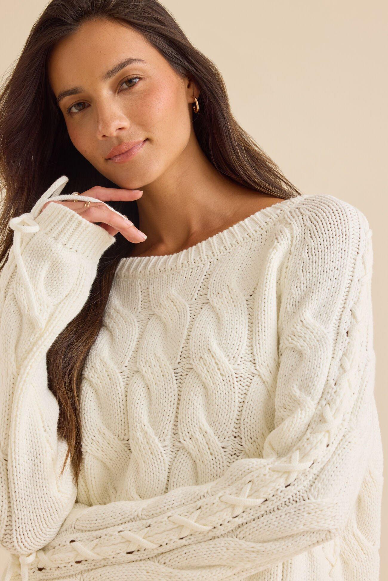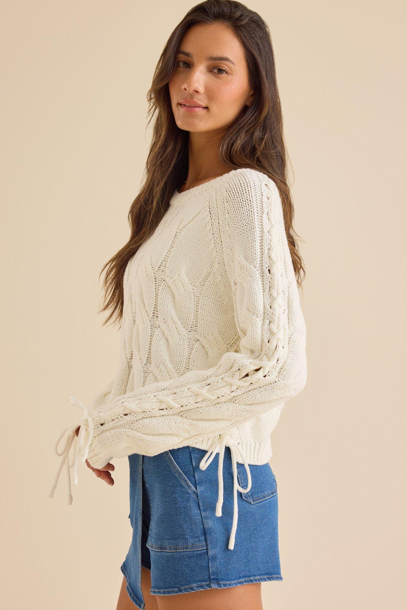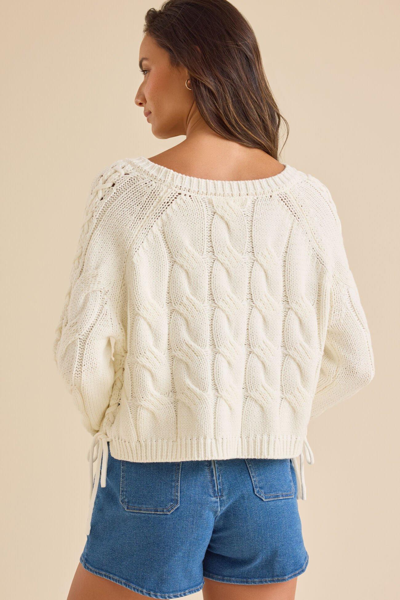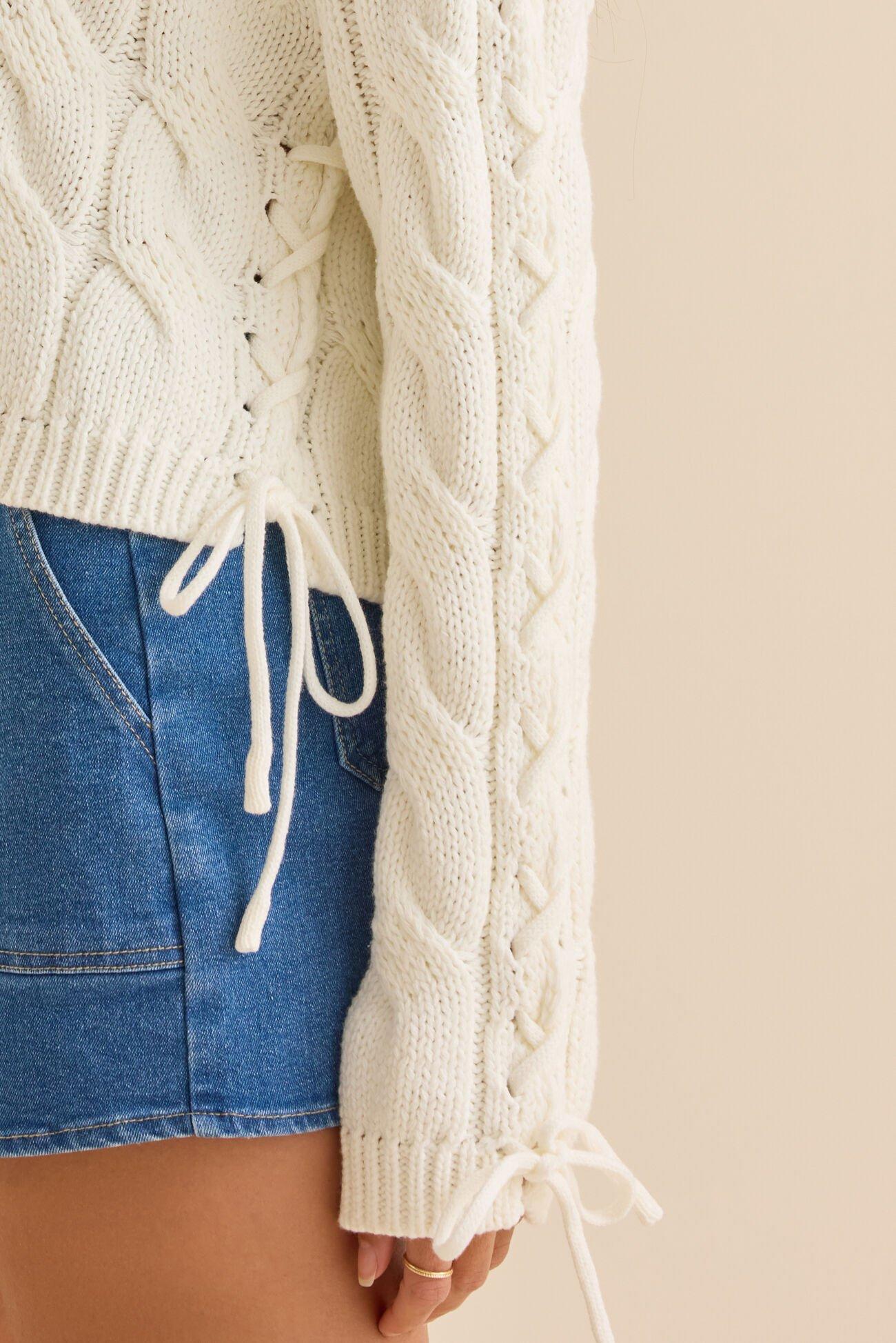 Carlin Lace Up Cable Sweater
