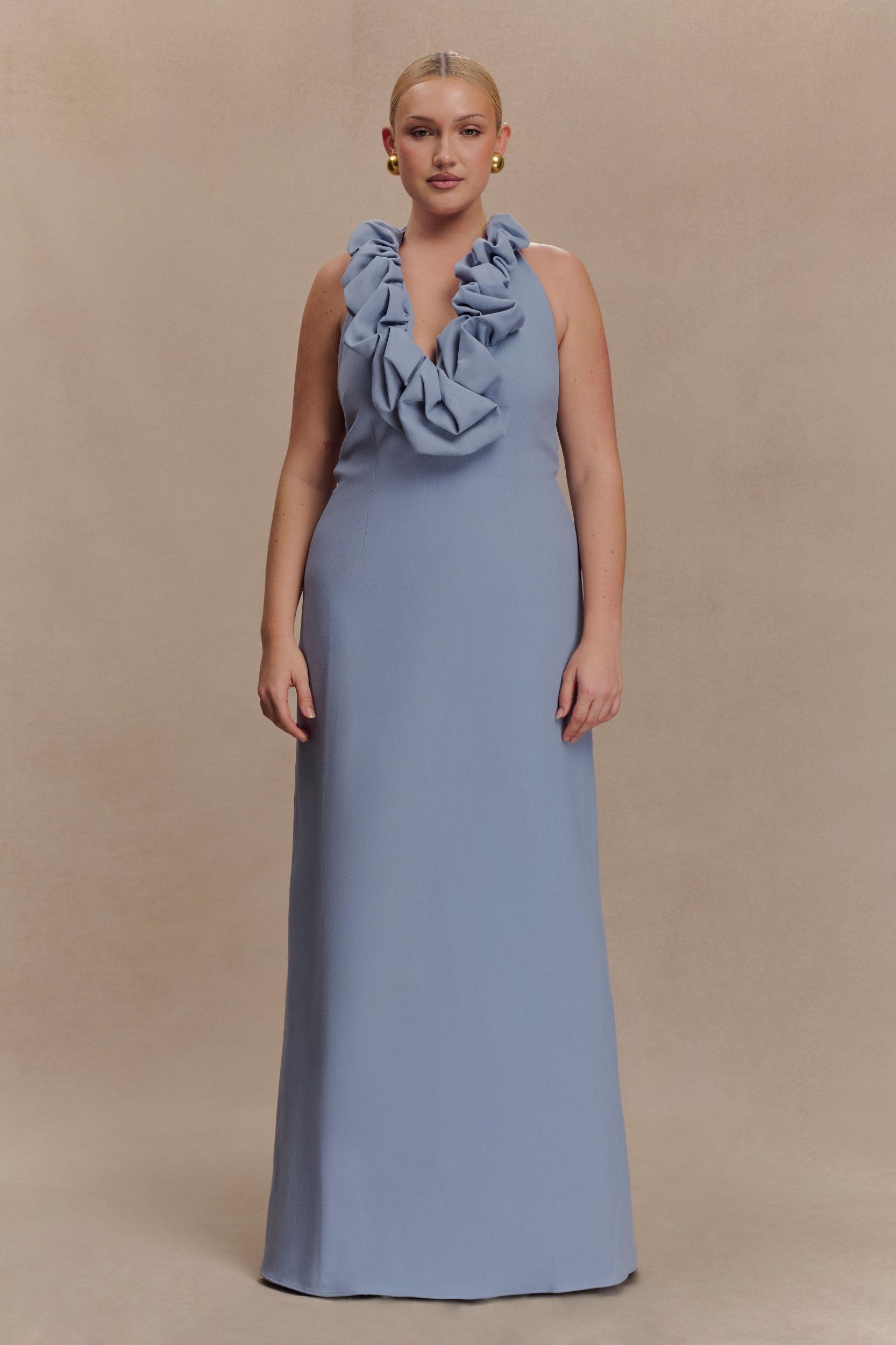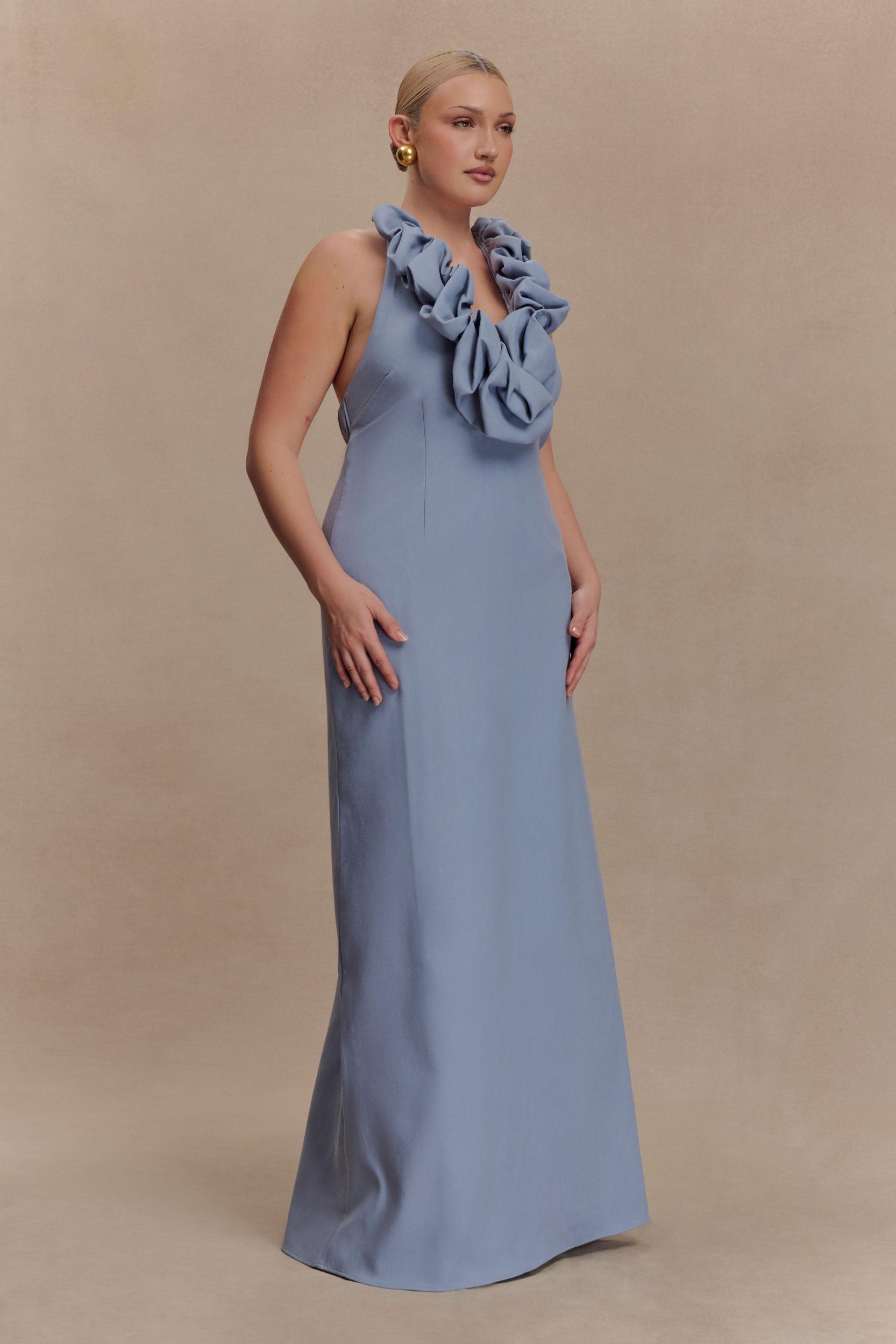 Breezy volume, beautifully undone. The CAROLYN Linen Bubble Maxi Dress is the perfect blend of playful silhouette and breezy sophistication. Featuring a low bubble neckline and halter neck with button closure, this maxi dress flatters with an airy A-line hem and subtle structure. A back elastic strap ensures a comfortable fit, while a centre back invisible zip keeps the finish clean. Fully lined for effortless wear, this dress is your go-to for sun-soaked days, garden parties, and elevated holiday styling.