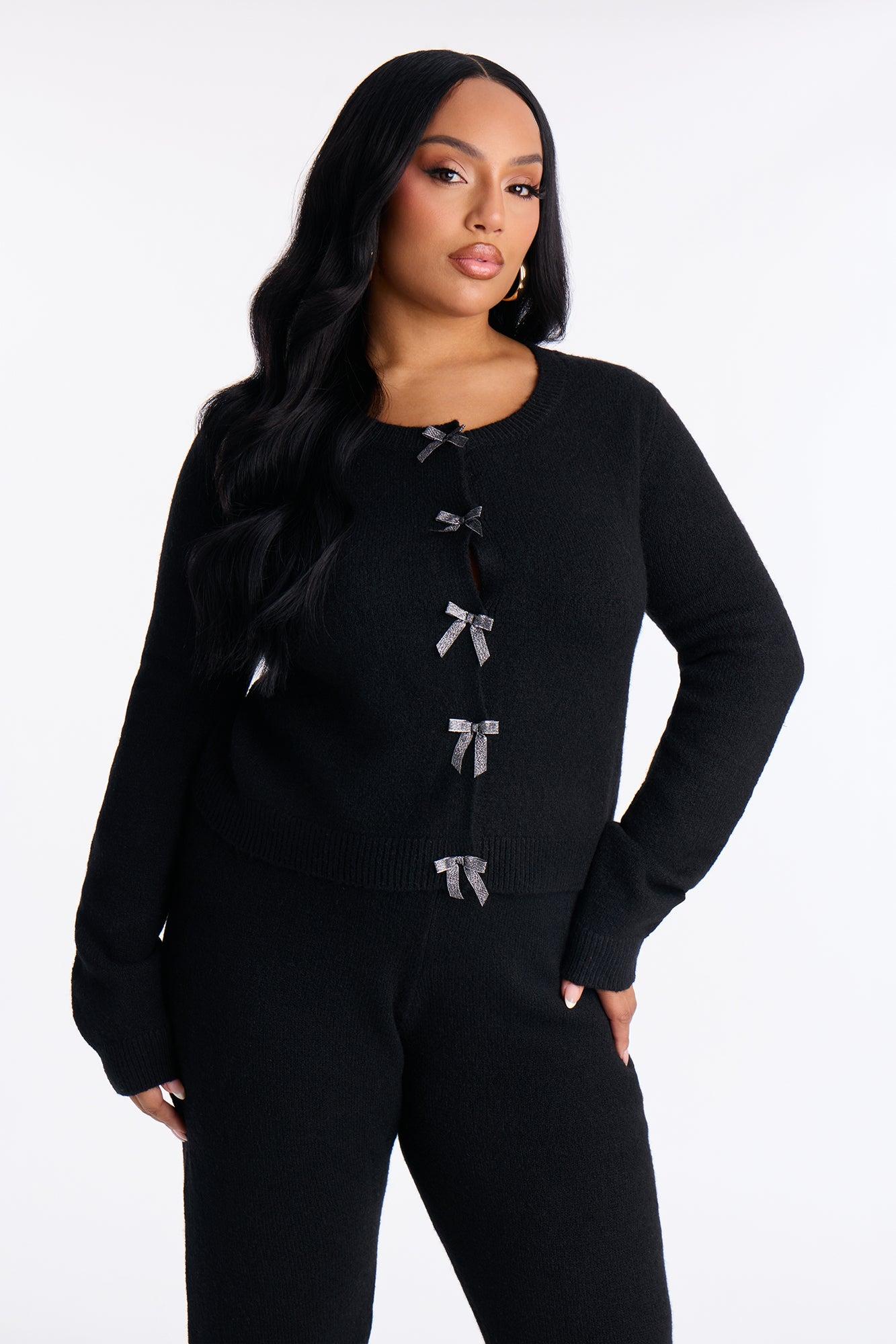Carrie Embellished Bow Sweater Pant Set - Black Female