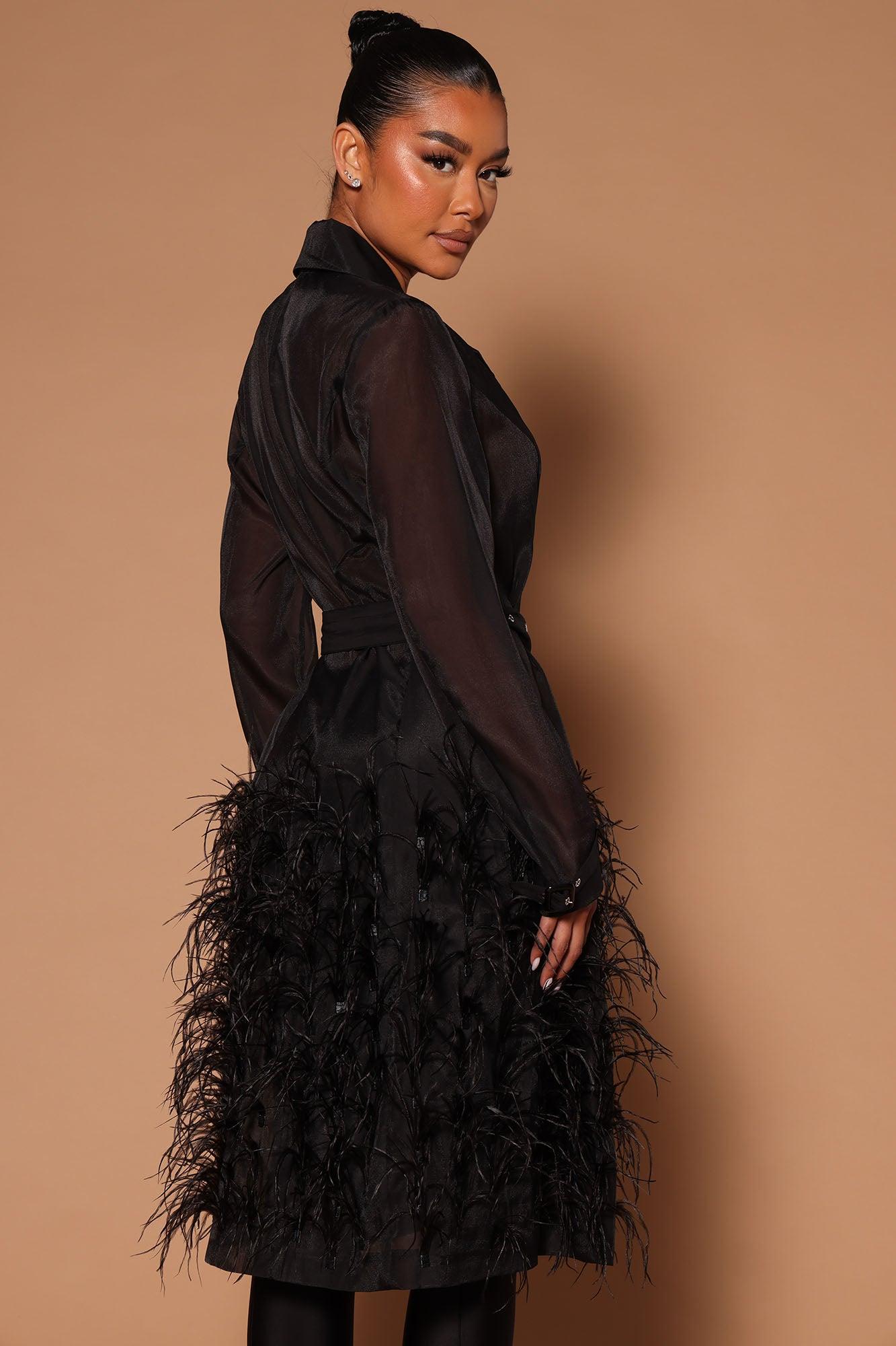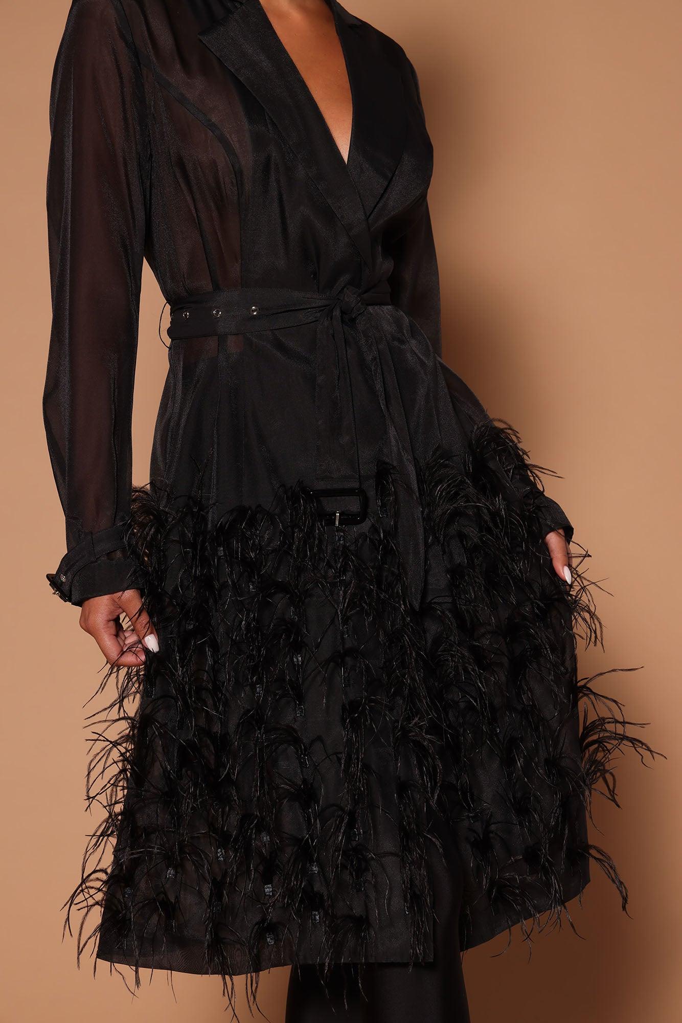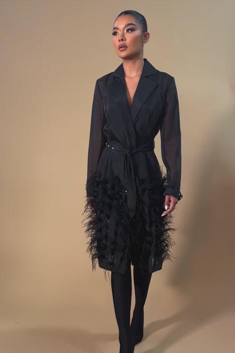 Carrie Feather Belted Trench Coat - Black
