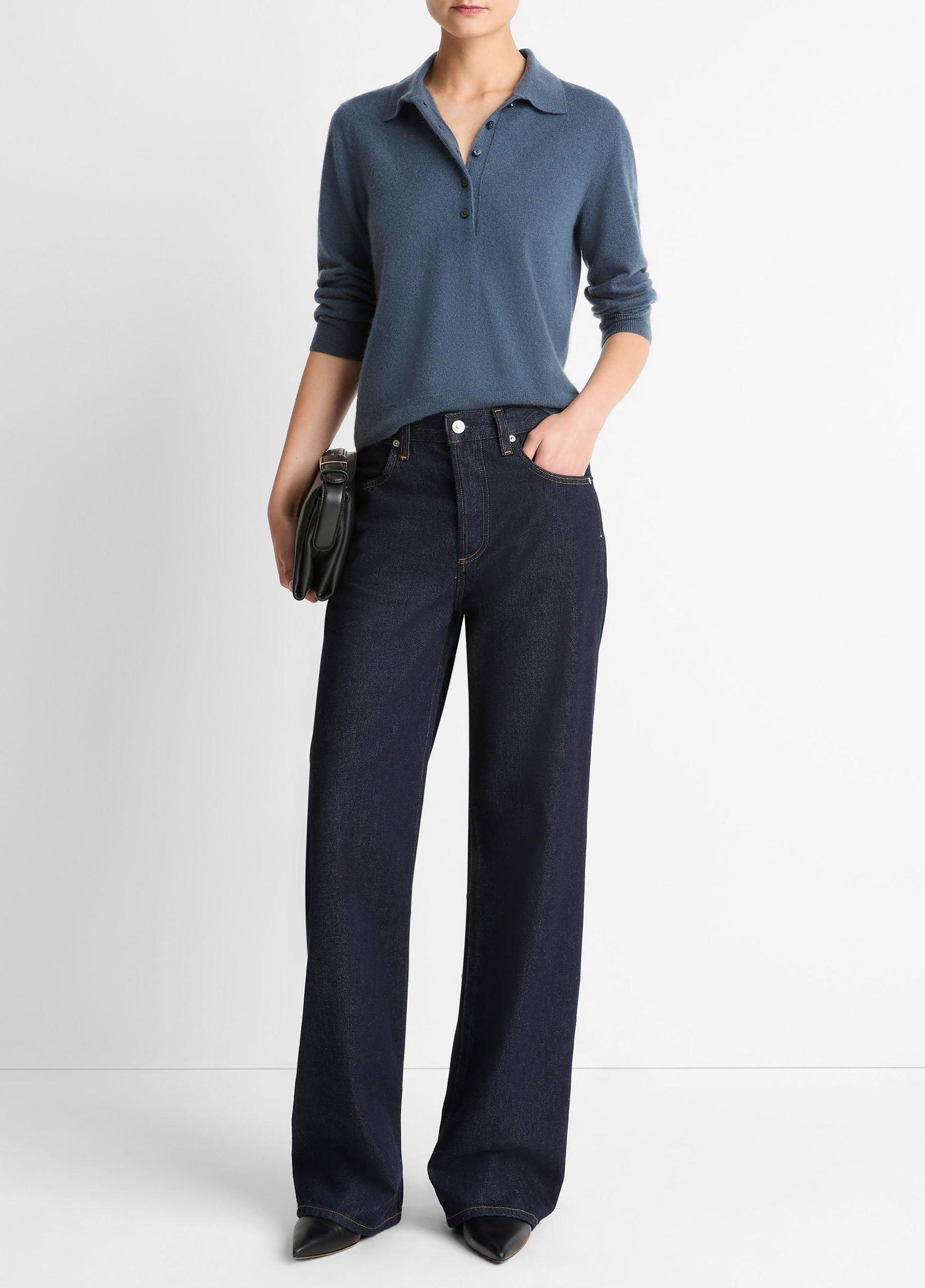 Cashmere-Silk Polo Sweater