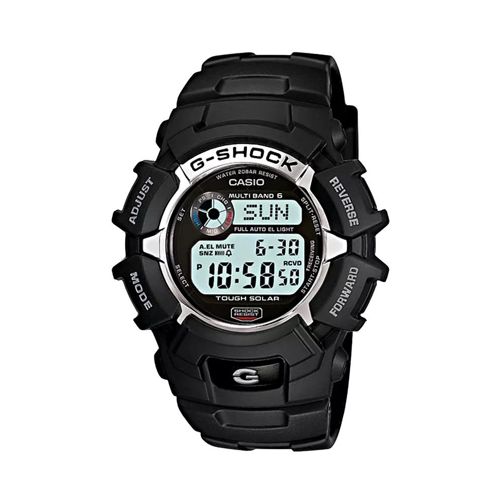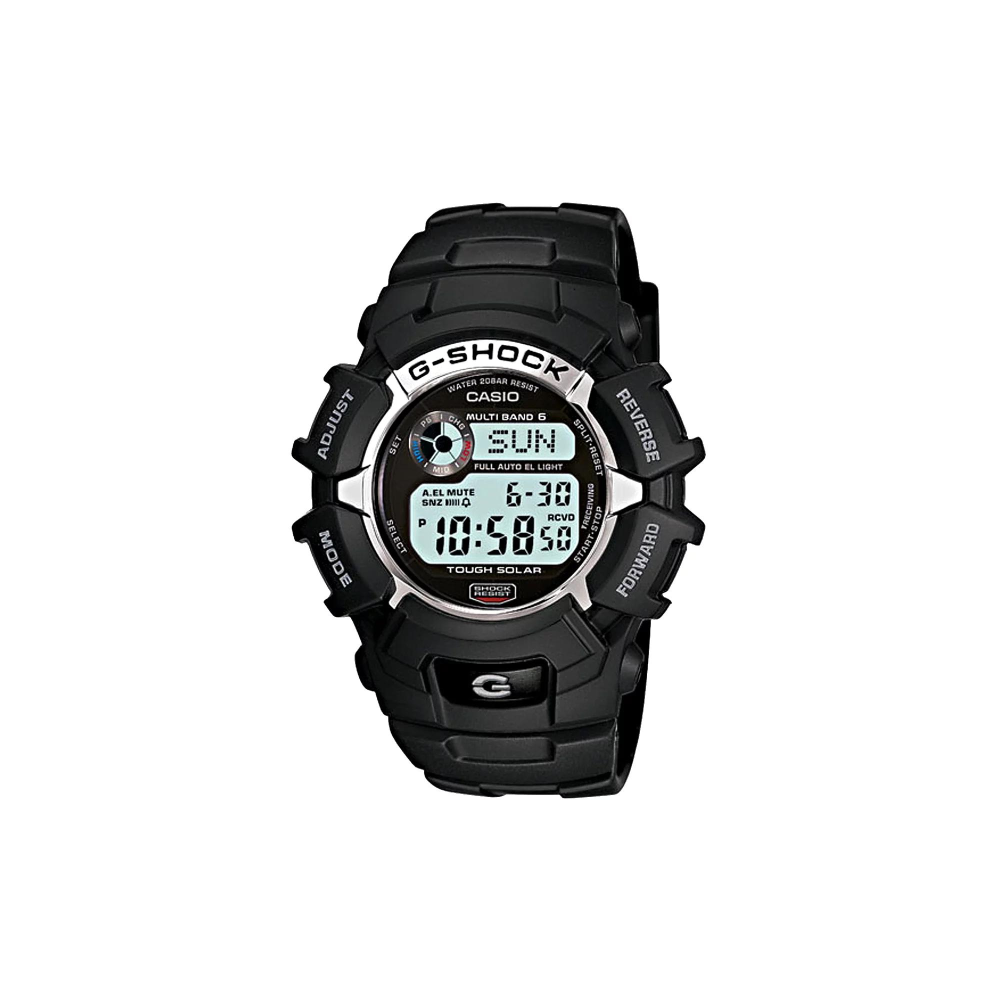 Take the world by storm wearing this mens Casio G-Shock Tough Solar atomic chronograph digital watch.Watch the product video here. Tough Solar technology uses direct and ambient light for power. Digital display with backlight makes reading easy. Mineral-crystal face cover prevents scratching. Atomic timekeeping receives automatic calibration radio signals six times per day to keep you current. Chronograph function records elapsed time, split time and 1st-2nd place times. Shock-resistant design offers durability. Battery indicator lets you know when to recharge. World time features 31 time zones and 48 citiesin civilian or military time for convenient travel. Automatic calendar, alarms and hourly chime keep you on track. Adjustable black resin band ensures a custom fit. Details: Water resistant to 660 feet Stainless steel back Light operated Manufacturers 1-year limited warrantyFor warranty information please click here Model no. GW2310-1K Size: One Size. Gender: male. Age Group: adult. Material: Rubber/Silicone.
