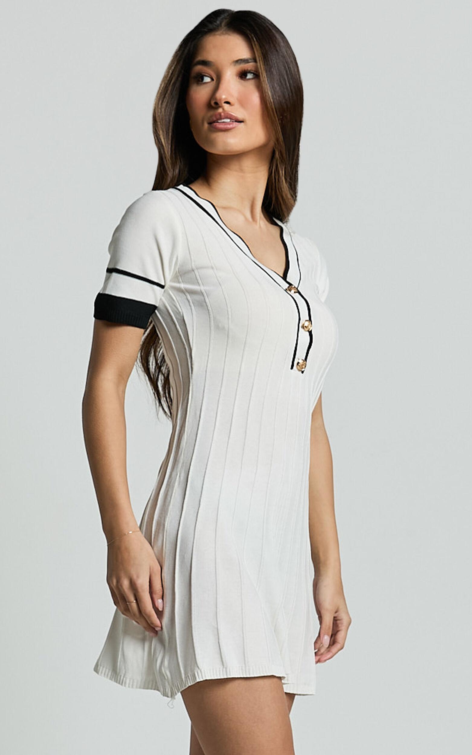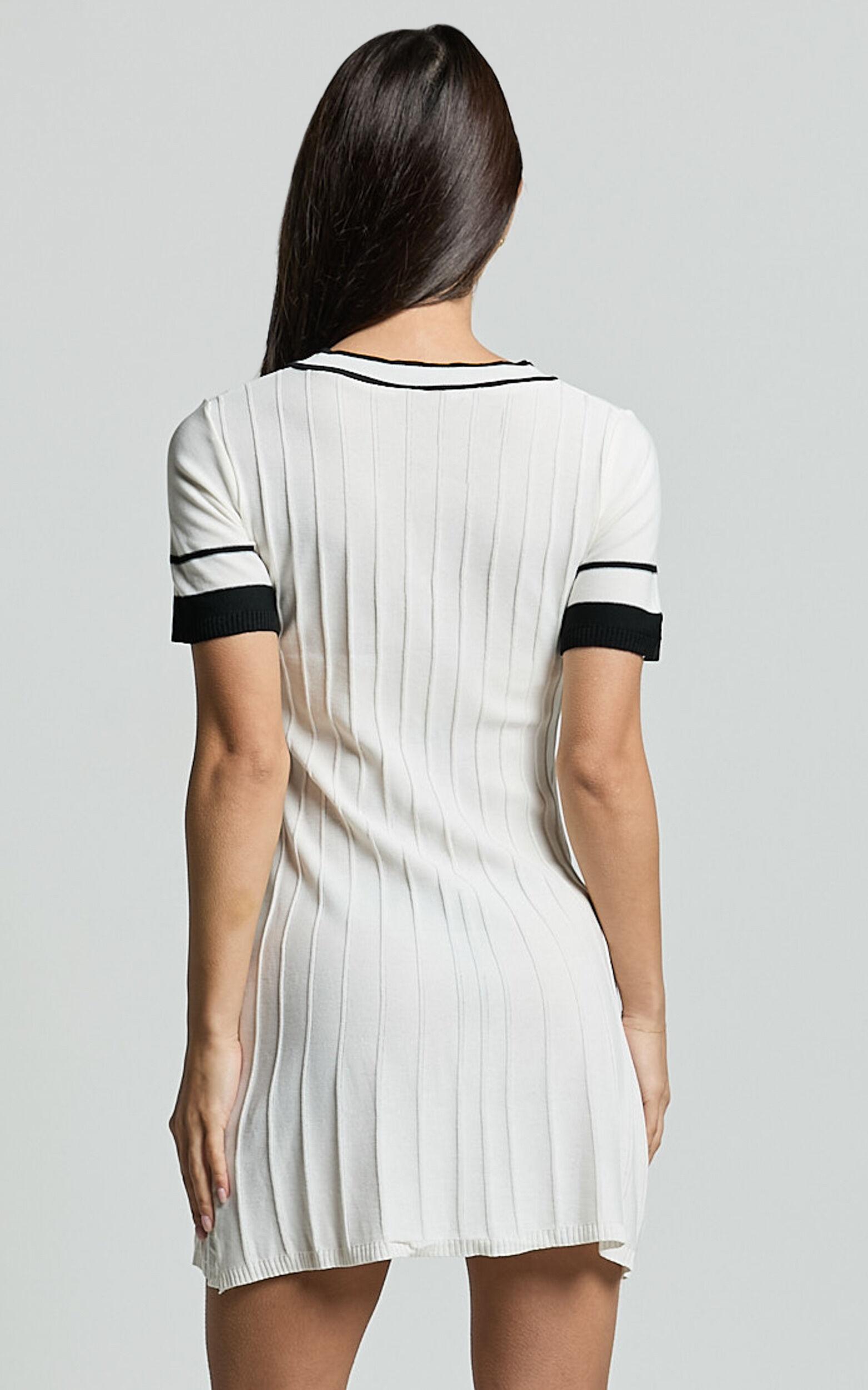 Make a statement in the Cassandra Mini Dress, where knit meets chic in an unforgettable ivory/black contrast. This isn't just any dress; it's a celebration of style, versatility, and comfort wrapped into one eye-catching piece designed for the bold and the beautiful. Perfect for those days that flow effortlessly into party nights, its fully fashioned knit ensures you not only turn heads but also move with ease.Product Details:Buttons detailKnit dressV NeckParty readyMini lengthShort sleeveAcrylic fabricMaterial and Care85% Acrylic, 15% WoolLow / No stretch