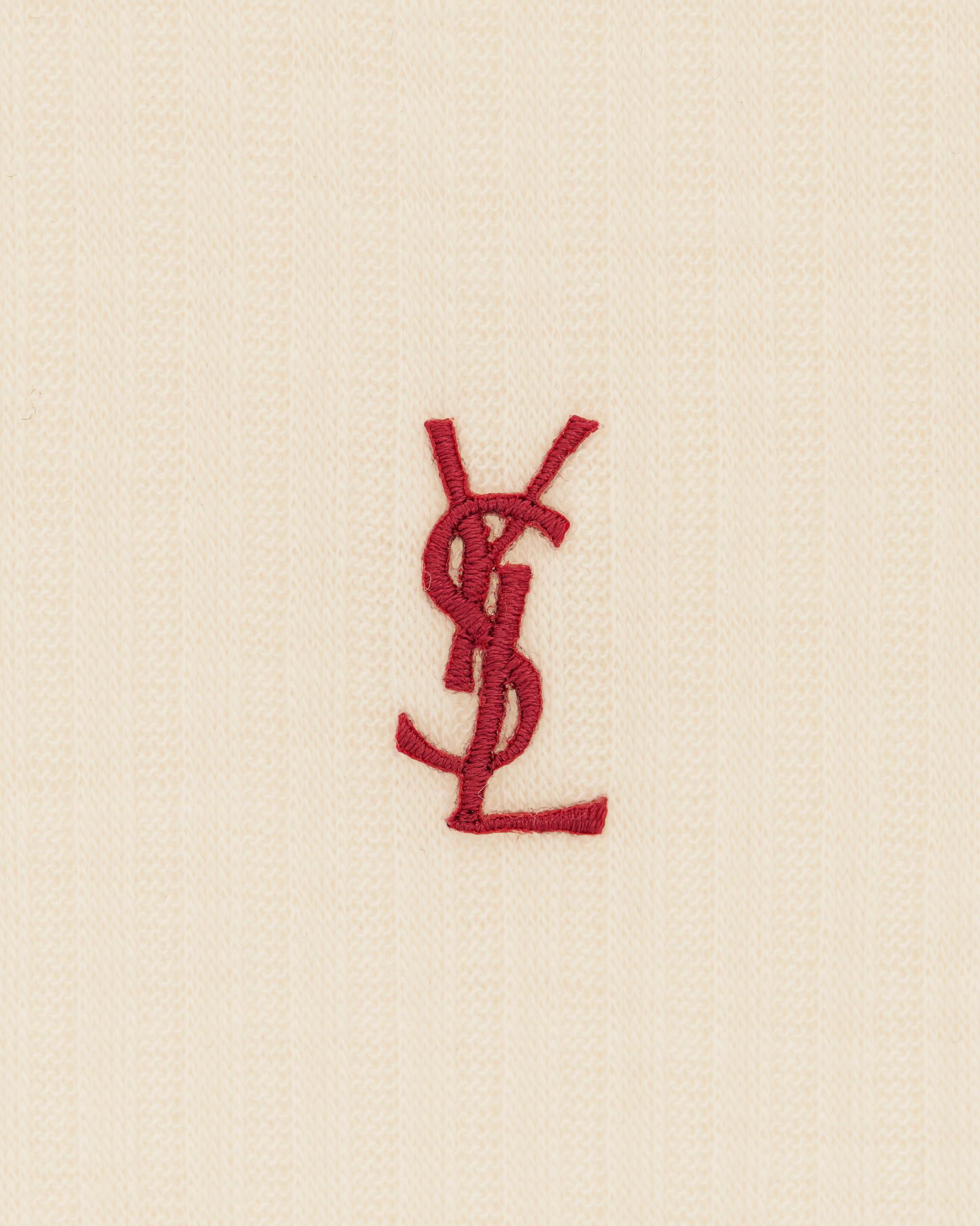 Semi-sheer ribbed tank top with a round scoop neck and Cassandre embroidery on the chest.