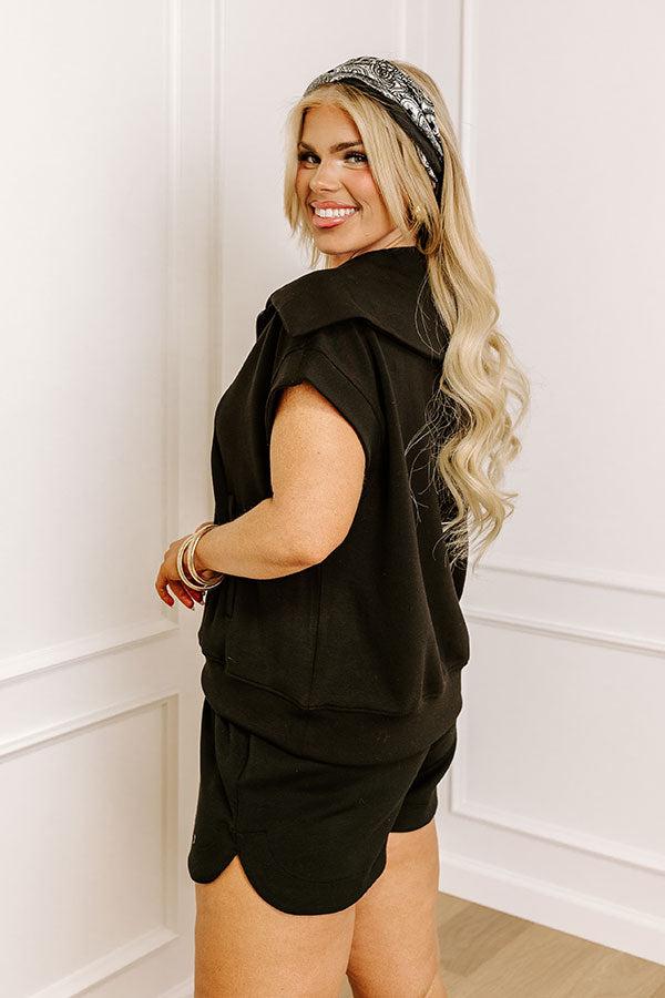 - Stay comfy and stylish in this luxe sweatshirt! - Ultra soft, unlined material - A zippered v-cut neckline with an oversized collar - Short, loose sleeves - A functional kangaroo pocket - A relaxed silhouette that ends in a straight waistband