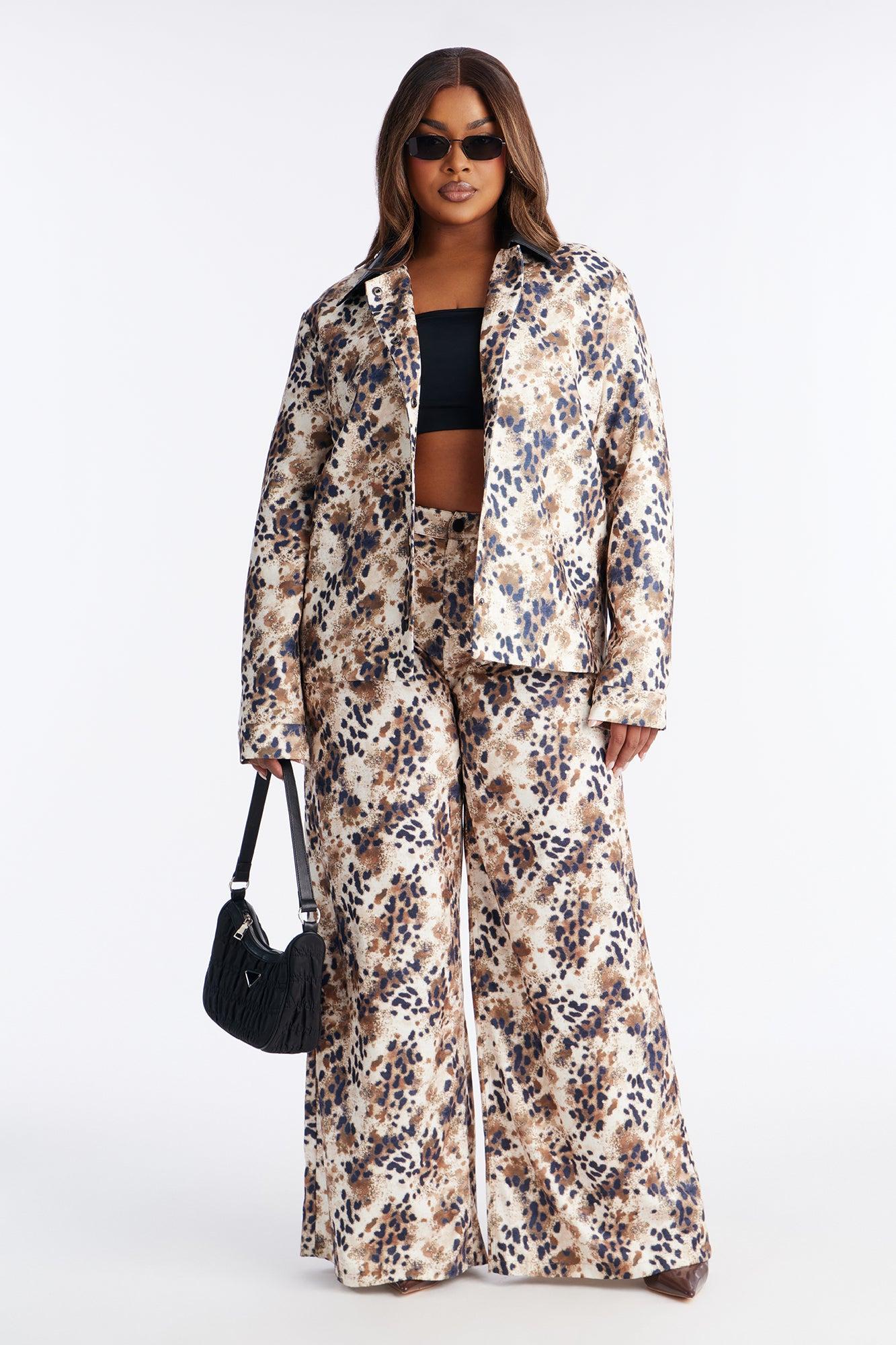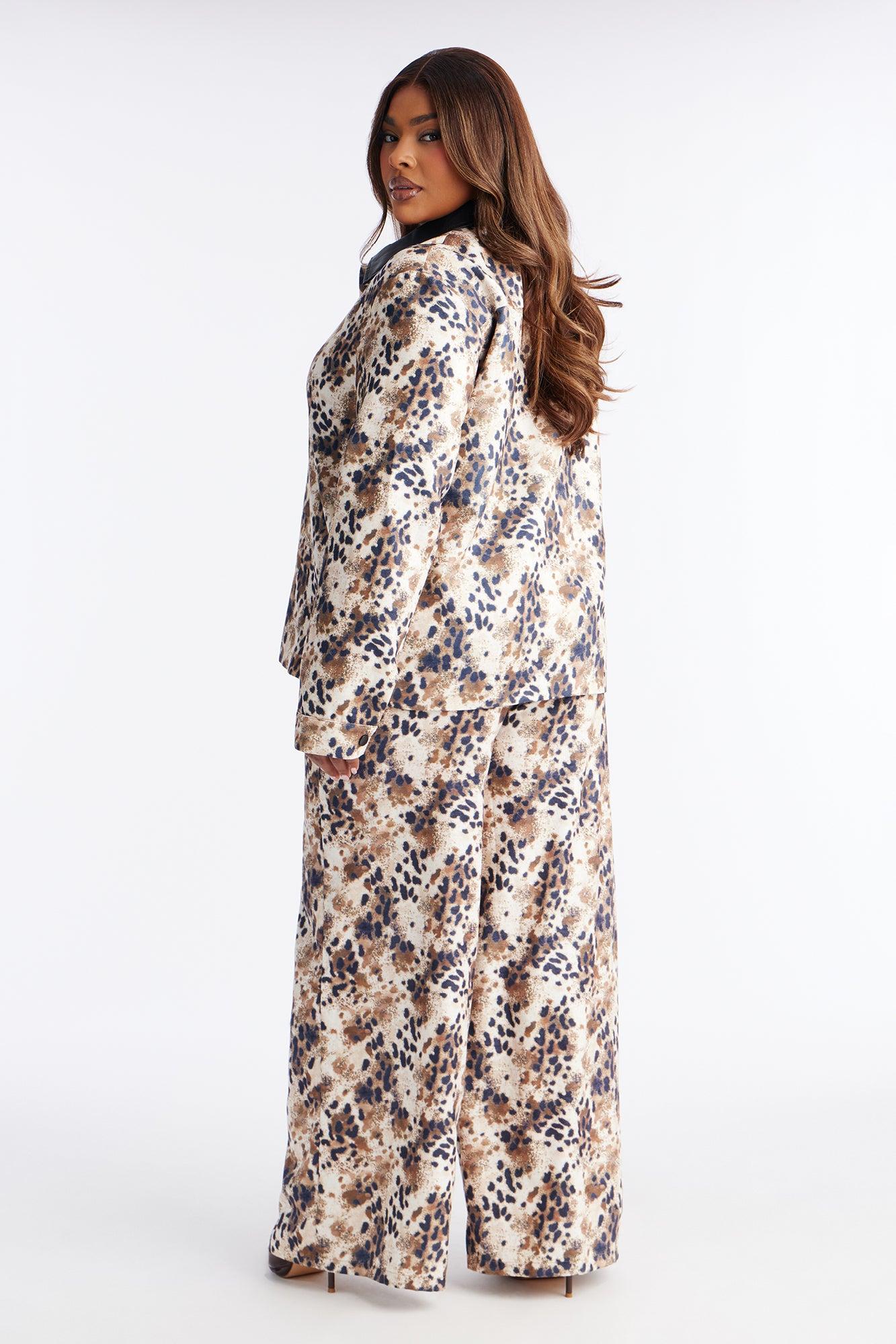 Available In Brown Combo. 2 Piece Ensemble Jacket And Pant Set Non Stretch Lined Long Sleeve Button Up Wide Leg 33" Inseam Disclaimer: Print Placement Will Vary. Top/Bottom Self: 100% Polyester Top Contrast: 100% Polyester with Polyurethane Coating Top Lining: 100% Polyester Imported