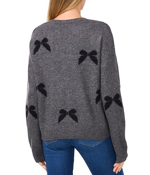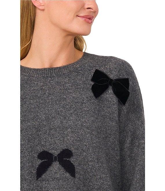 CeCe 3D Velvet Bow Crew Neck Long Sleeve Pullover Sweater