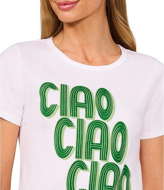 CeCe Ciao Knit Crew Neck Short Sleeve Graphic Tee