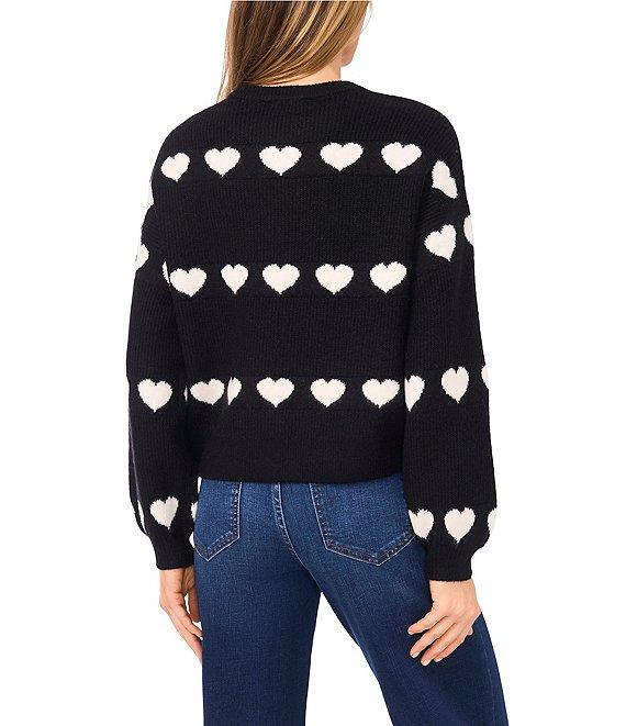 CeCe Knit Jacquard Heart Crew Neck Long Sleeve Sweater