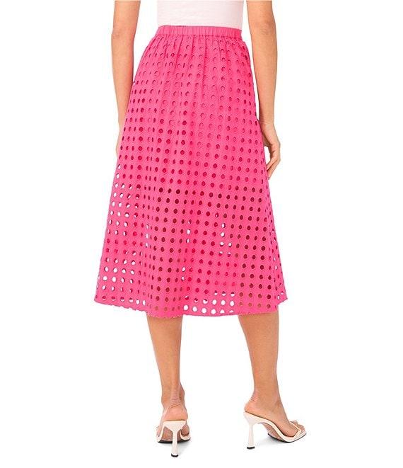 CeCe Woven Eyelet Circle A-Line Midi Coordinating Midi Skirt