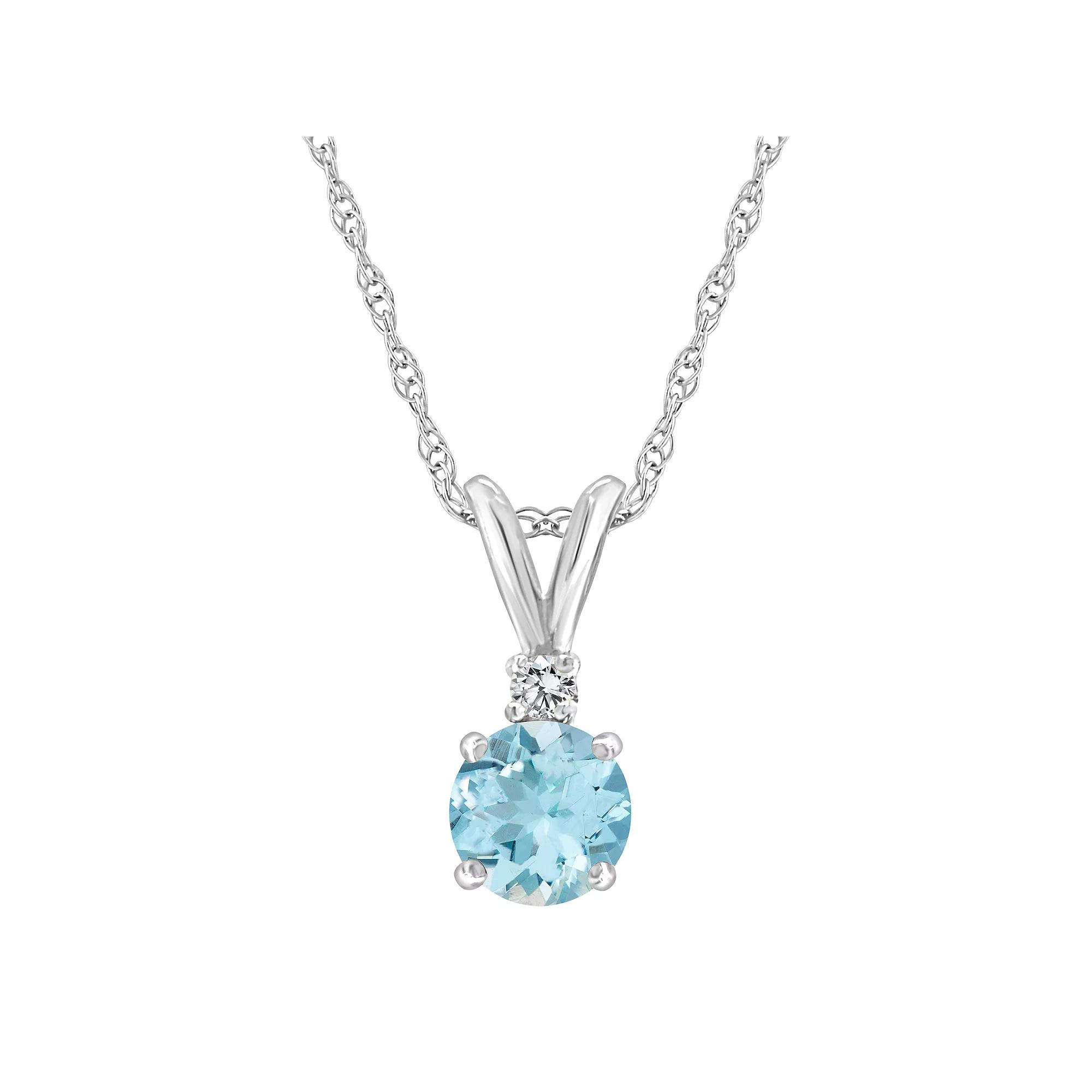 This classic pendant necklace features a beautiful 5mm Round Aquamarine accented by a single Diamond on top. Available in your choice of 14K White or Yellow Gold. | Belk & Co 14K Gold 5Mm Round Aquamarine Diamond Accent Pendant