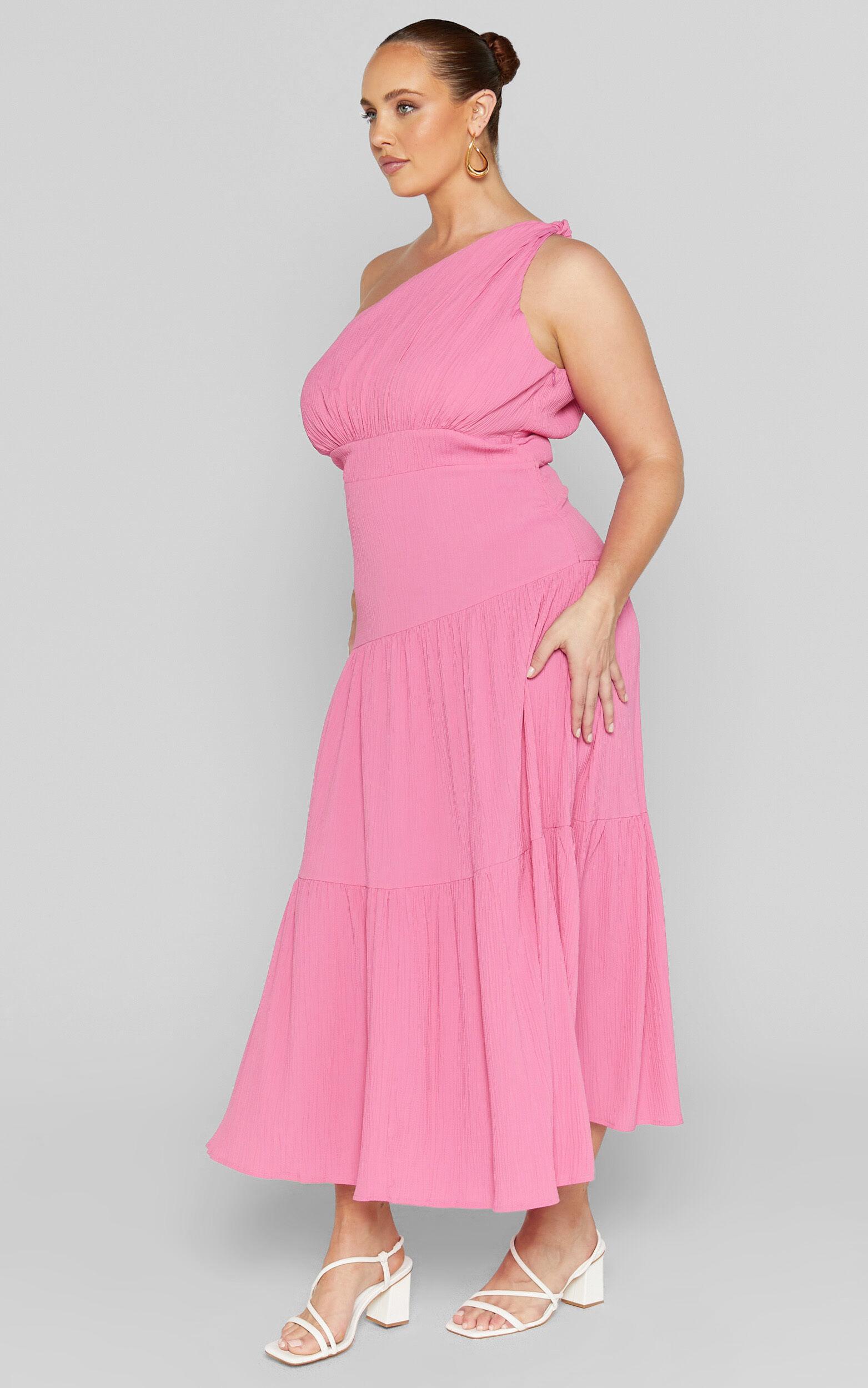Turn heads in the Celestia Midi Dress - a vibrant and versatile piece that will become your go-to for any occasion. This tiered one shoulder dress in bright pink is designed to flatter with its A-line silhouette, giving you an effortlessly chic and feminine look. Made from soft rayon fabric, this sleeveless dress is lightweight and breathable, making it perfect for those casual weekend activities or day-long events where comfort is key. Whether you're off to brunch with friends or attending a summer soirée, the Celestia Midi Dress will have you feeling confident and ready to take on the world in style.Product Details:A Line Dress, Day Dress, Fitted dressesOff The Shoulder necklineCasual, Weekend Activity end useMidi lengthSleeveless styleRayon fabricSize and FitSize S / 8 length: 132cm / 51.97inStudio model is wearing size XS / 6 AU / 2 US / 6 UK / 34 EUStudio model measurements are:Height: 170cm / 5'7''Bust: 84cm / 33''Waist: 61cm / 24''Hip: 88cm / 35''Studio model is wearing size XXXXL / 20 AU / 16 US / 20 UK / 48 EUStudio model measurements are:Height: 165cm / 5'5''Bust: 113cm / 44''Waist: 104cm / 41''Hip: 137cm / 54''Material and CareLining: 10% Elastane Main Fabric: 42% Polyester, 3% Spandex, 55% Rayon Lining: 90% PolyesterLow / No stretch