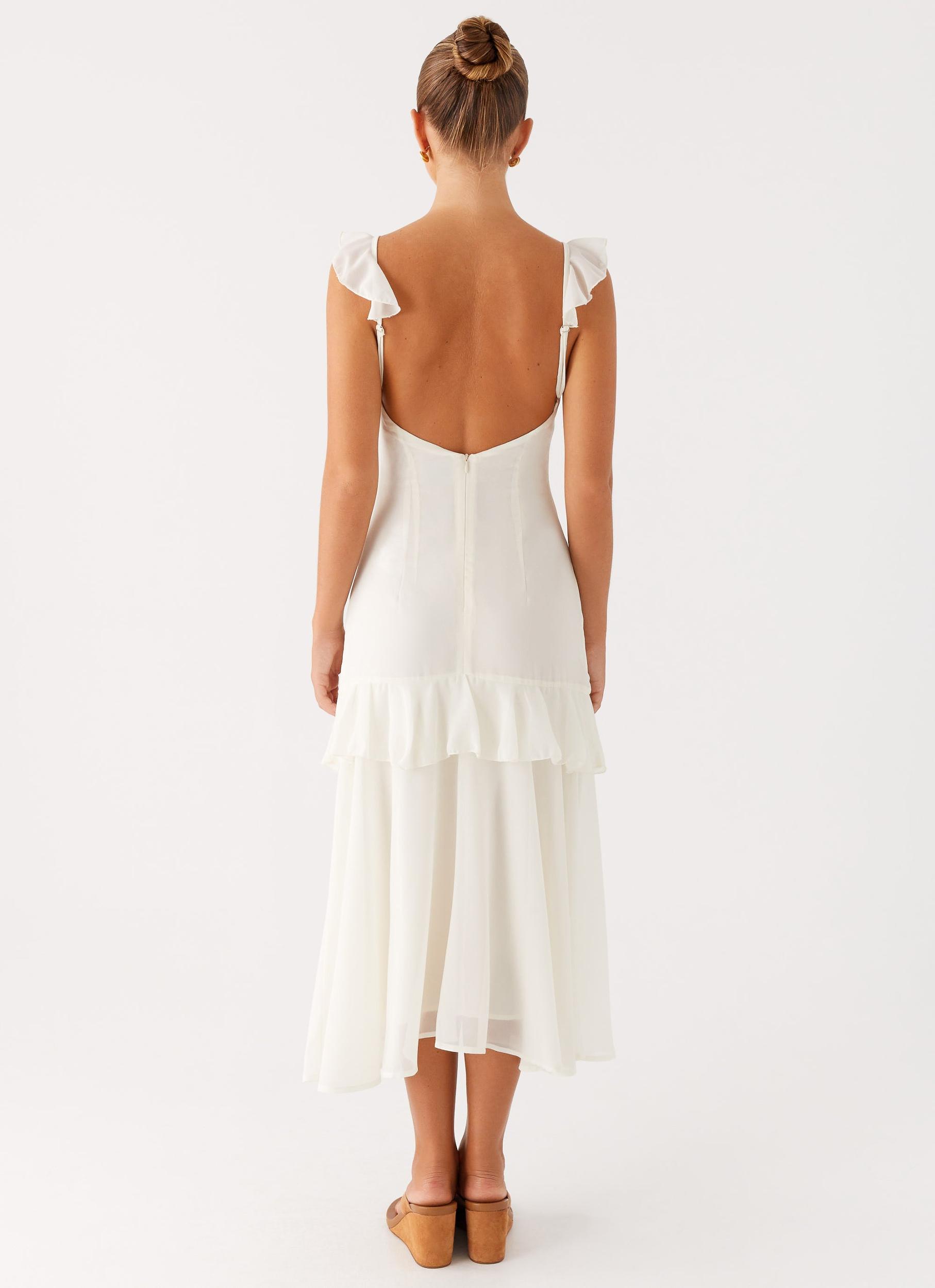 Peppermayo ExclusiveUnapologetically bold. The Celie Midi Dress stuns with a V neckline and a front corset tie that cinches you in all the right places. Sculpted, sultry, and made for the nights when you own every moment.- V neckline - Midi length - Front corset tie - Neckline frill - Drop waistline frill - Flare skirt - Back thin adjustable straps - Open back - Back hook and eye, invisible zipper - Fully lined - 100% Polyester - L: 95% Polyester / 5% SpandexSize AU 8 / US 4 garment measurements:Length: 85 cm / 33.46 inBust: 76 cm / 29.92 inWaist: 69 cm / 27.17 inHip: 97 cm / 38.19 inHem: 138 cm / 54.33 inYasmin is 174cm and wearing a size AU 6 / and US 2