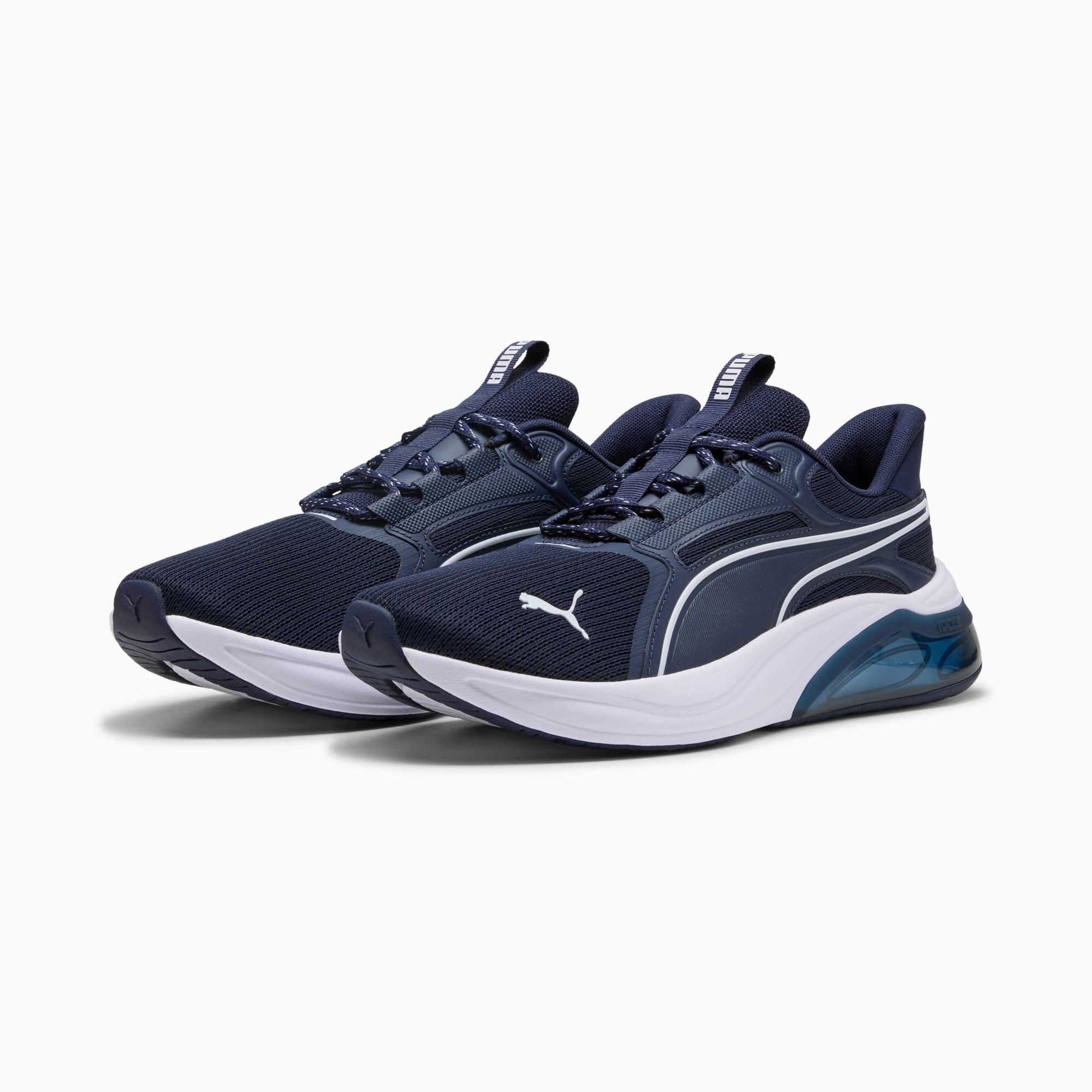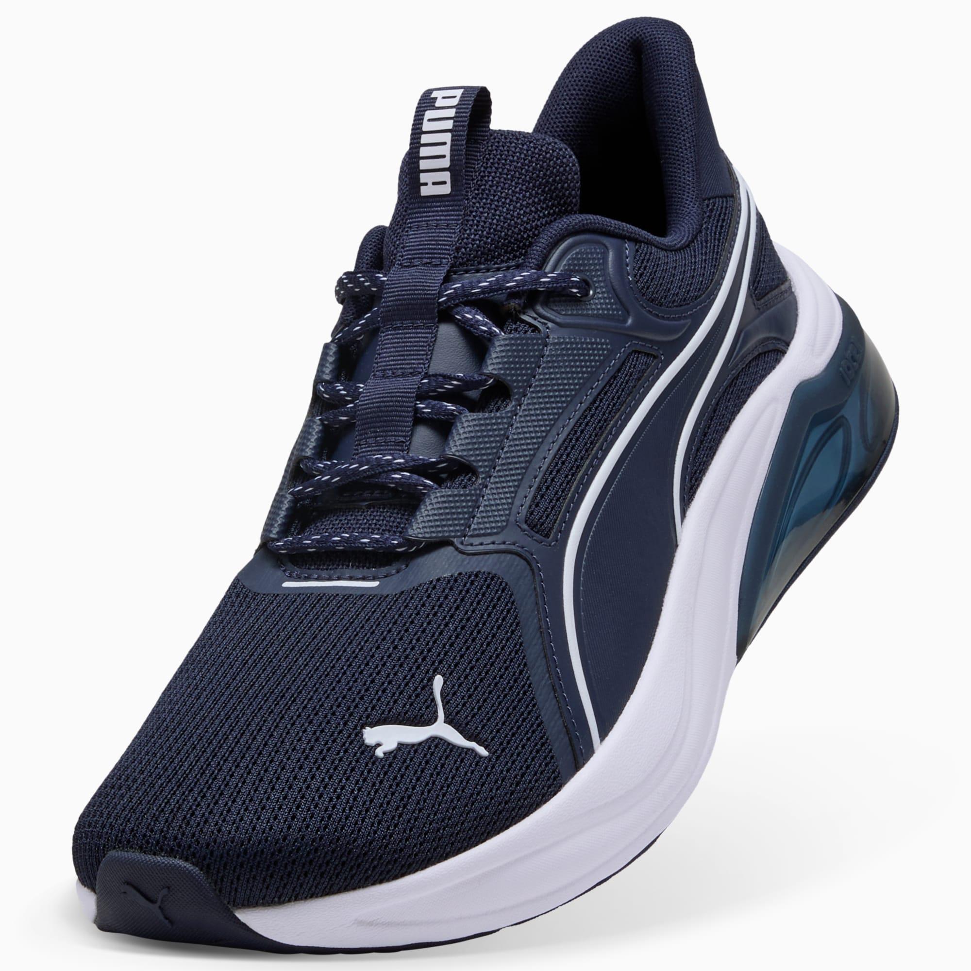 descriptionStay on your feet with these sneakers. Designed with 10CELL cushioning and a leather upper, they help you look and feel confident during your walks and jogs. We've added a bold color-blocked heel for fresh vibes and PU skin eyestays for extra locked-in support. Perfect for gym sessions or casual streetwear, these shoes deliver all-day style and functionality.Style: 311728_05Color: PUMA Navy-PUMA Whitefeatures & benefitsThe upper of the shoes is made with at least 20% recycled materials.detailsWidth: RegularLeather upperFastener: LacesPU skin eyestayLining: TextileCushioning: MediumHeel-to-toe drop: 10mmPronation: Neutralmaterials & careMaterial informationMidsole: 100% SyntheticSockliner: 100% TextileOutsole: 92.84% Synthetic, 7.16% RubberUpper: 52.50% Textile, 47.50% SyntheticLining: 100% Textile