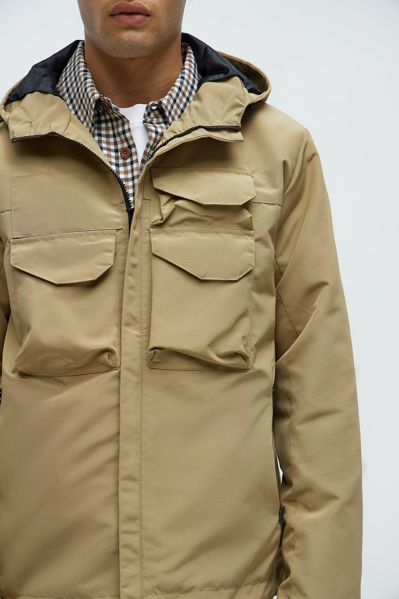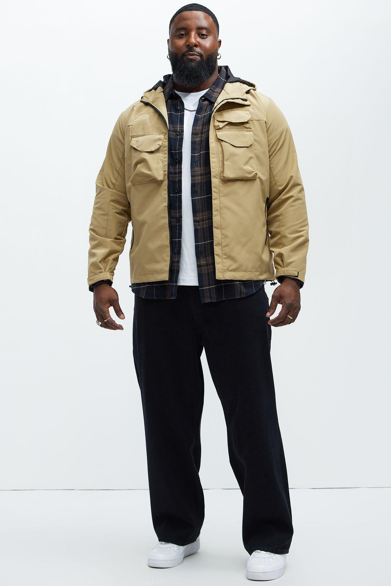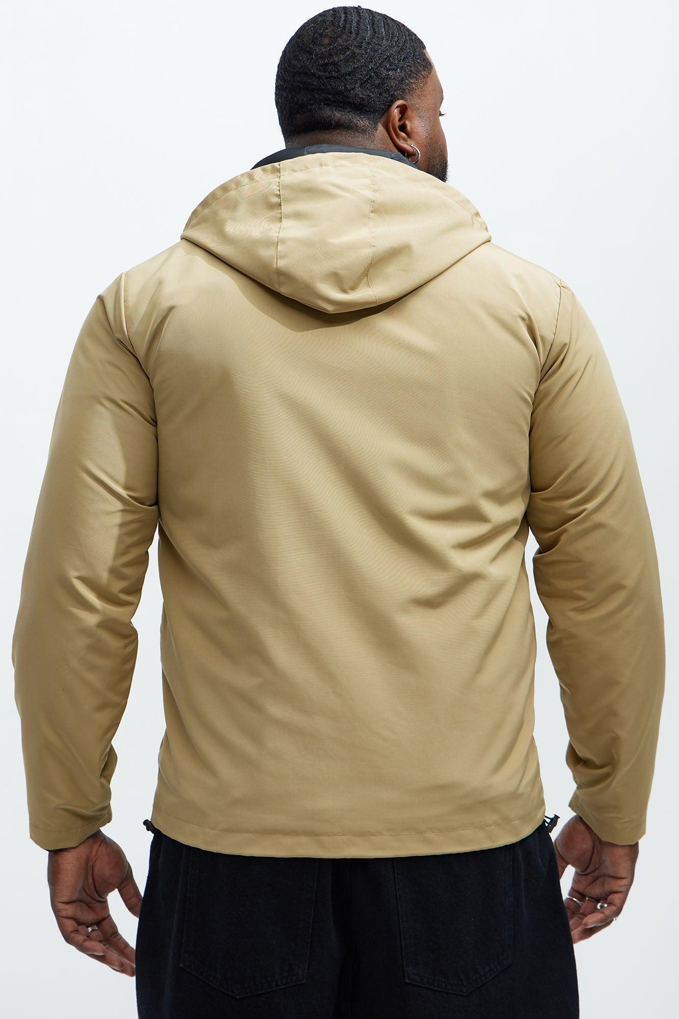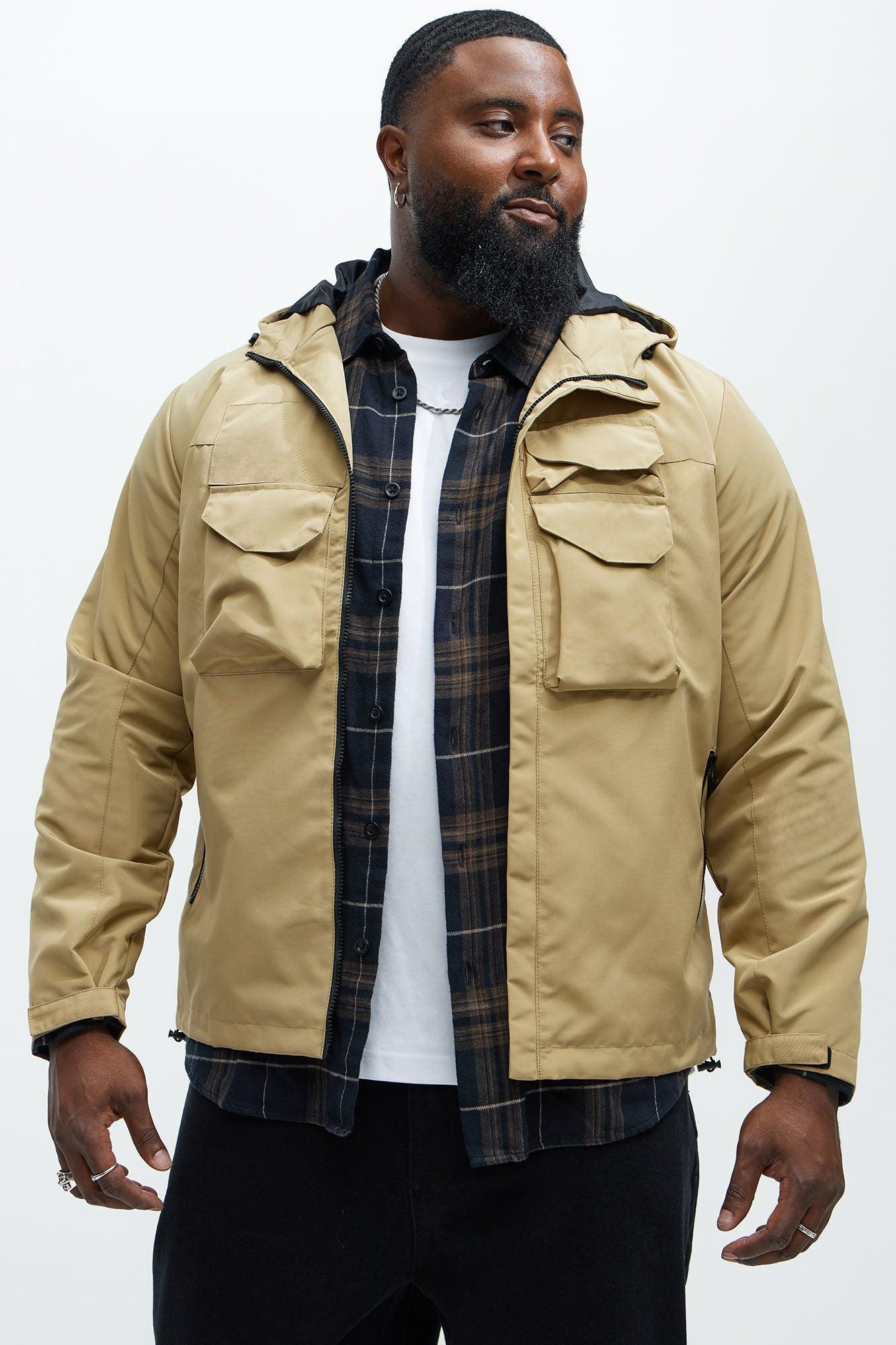 Available In Khaki. Mock Neck Front Full Zipper Closure Hooded Draw String Hood Details Utility Chest Pockets Front Hand Pockets With Zipper Closure Velcro Detail On Cuff Draw String Hem Detail Long Sleeve 100% Polyester Imported California Proposition 65 WARNING: Cancer and Reproductive Harm - www.P65Warnings.ca.gov.