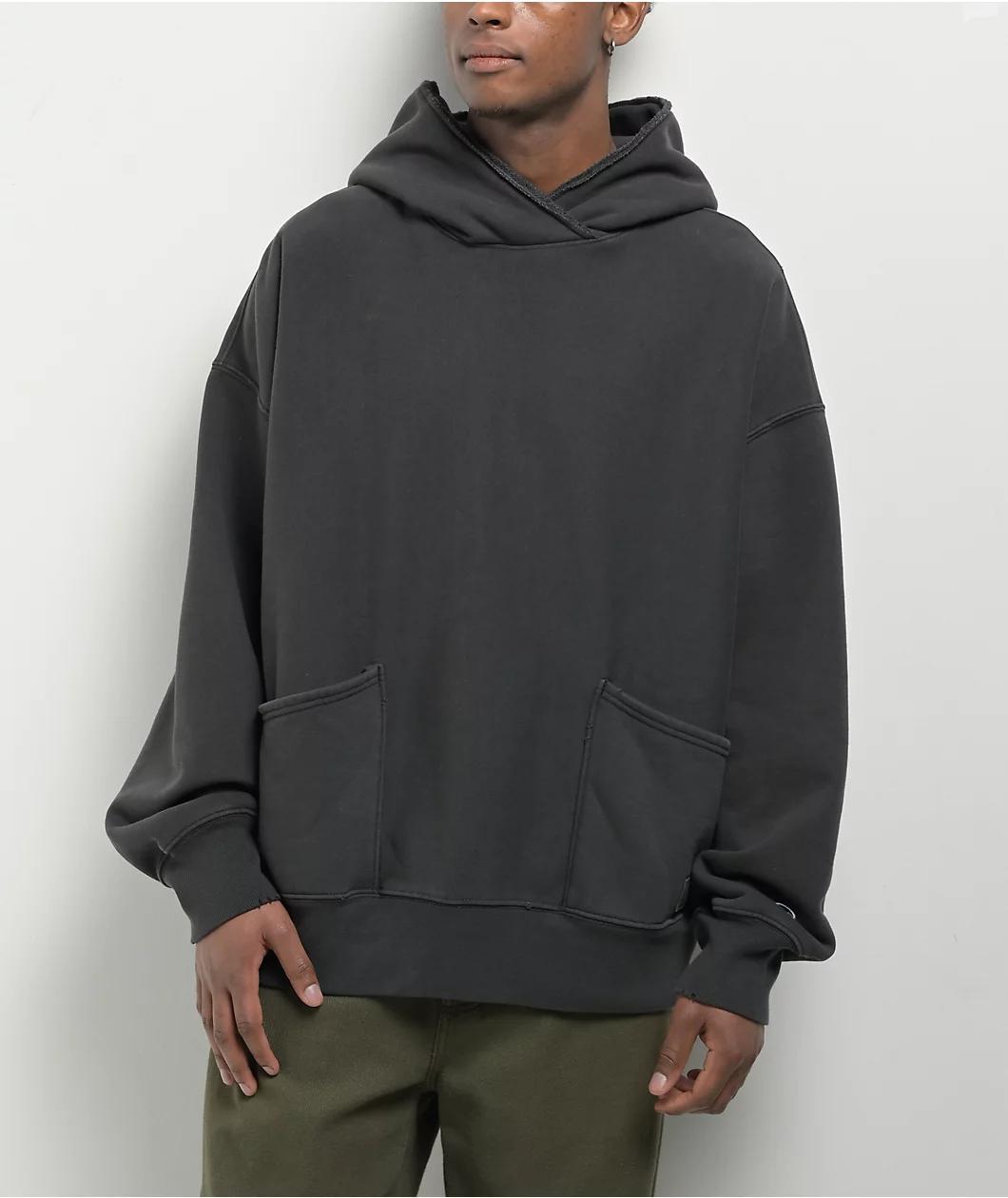 Enjoy a warm and comfortable hoodie with the Reverse Weave Crossover sweatshirt from Champion. The black pullover is treated with a vintage dye for a relaxed, thrifted look furthered by the distressed detailing throughout. Branding on the front left