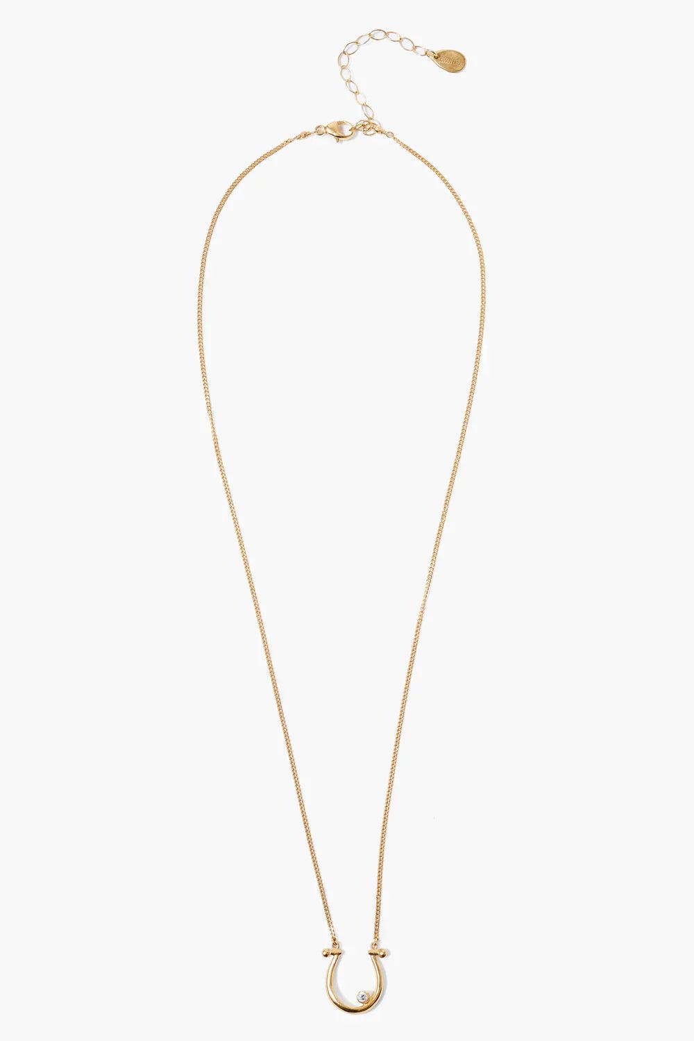 Experience the elegance and luck of the Chan Luu Diamond Horseshoe Necklace in Yellow Gold. This beautiful piece features a horseshoe pendant adorned with glistening white diamonds, adding a touch of glamour to any outfit.