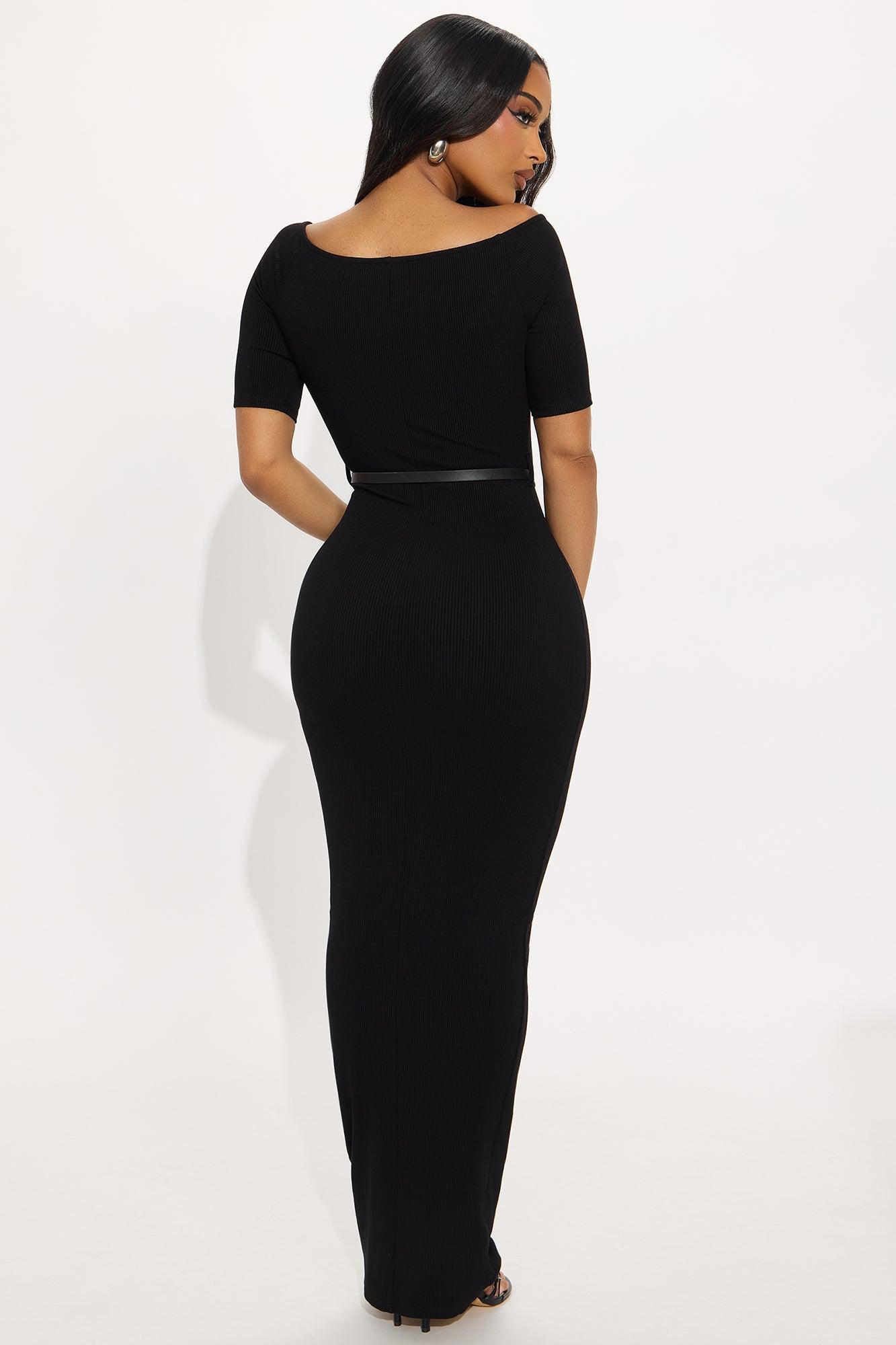 Channing Snatched Belted Maxi Dress - Black