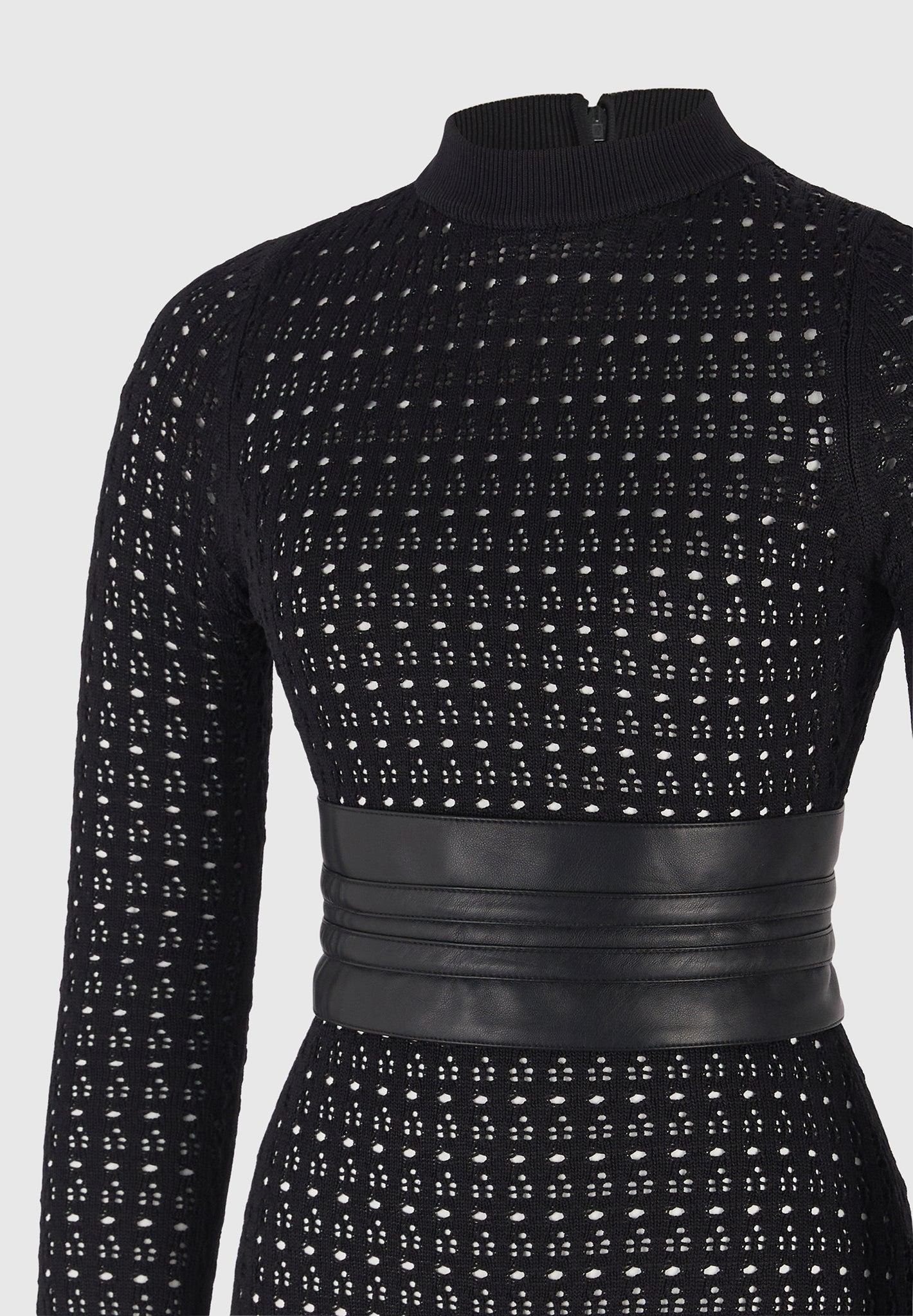 This classic black jumpsuit is made from soft pointelle knit and features a stylish belt cinching at the waist for a flattering fit. Its distinct design thanks to its ribbed texture accentuates your feminine silhouette. Fabric: Always check the care label for wash instructions. Model is 5'8", 32.5" Bust, 24" Waist, 32" High Hip, 37.5" Low Hip and Wears Size XS Based on Size XS - Front Length cm/in, Chest cm/in, Sleeve Length cm/in Stretch Factor - /3