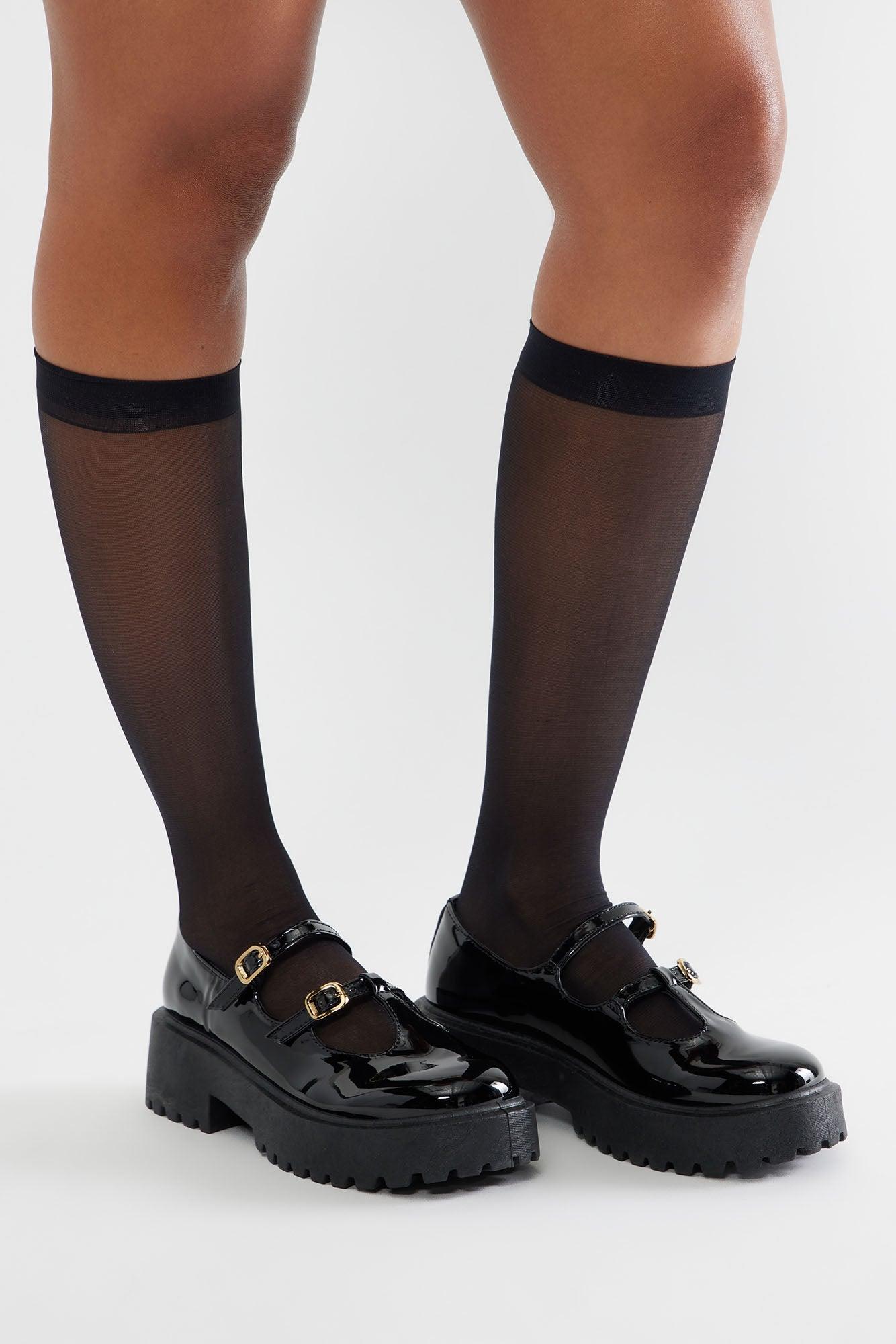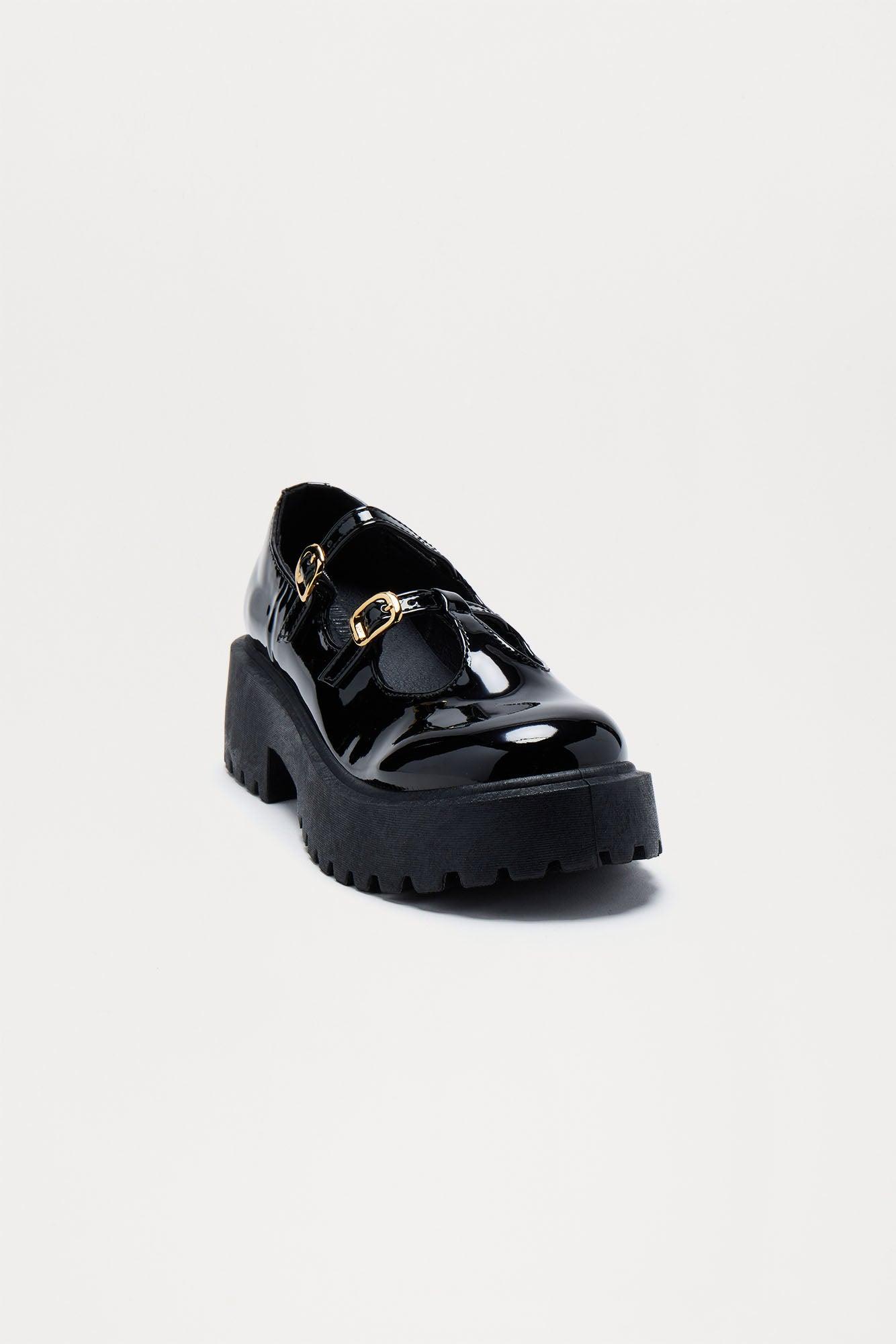 Available In Black. Platform Loafers Buckle Detail Round Toe 2.5" Mid Block Heel Imported