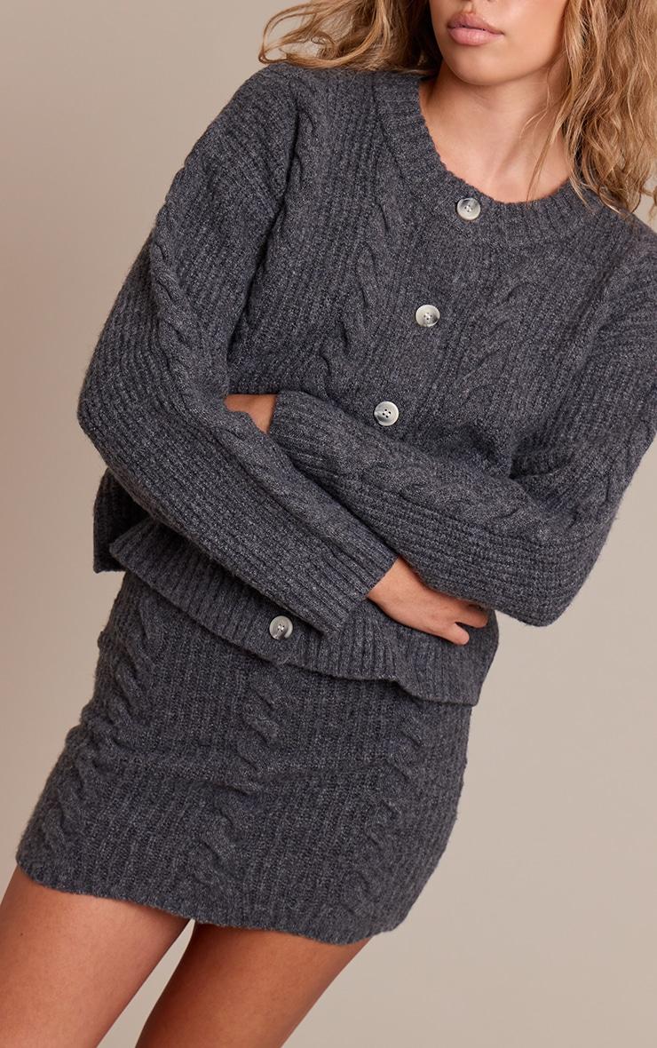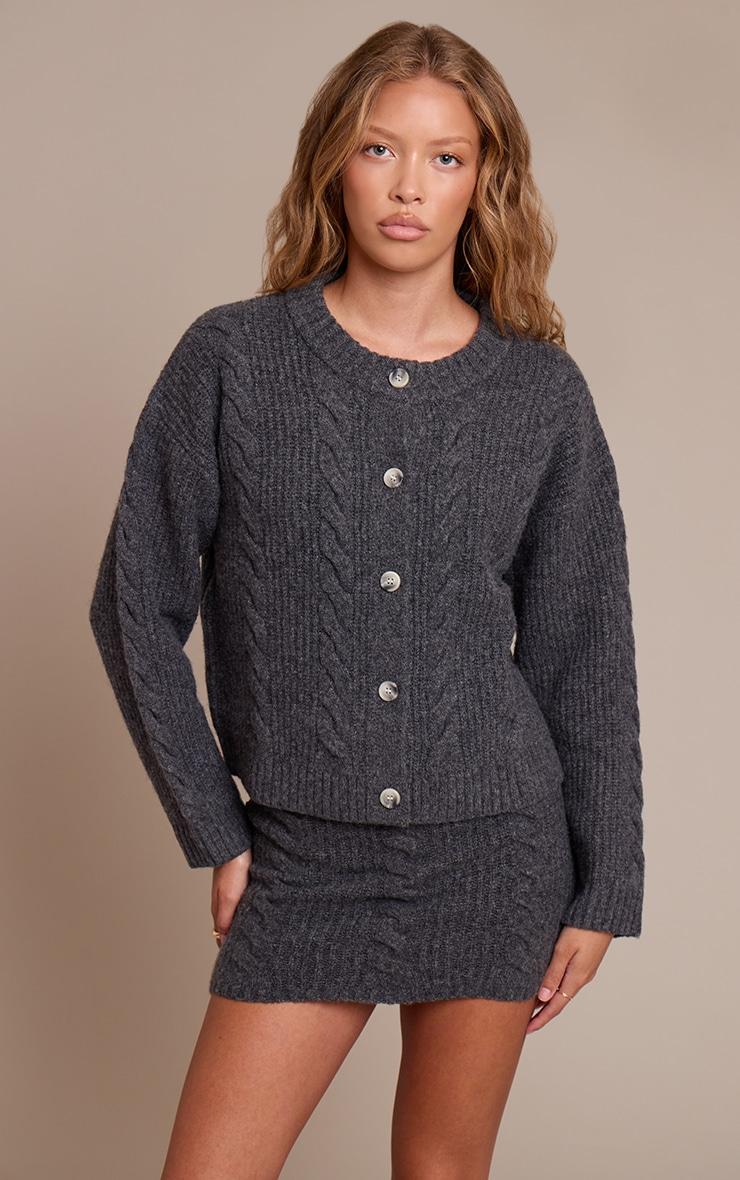Textural depth defines your confident daywear. The charcoal cable knit mini skirt brings an artful touch to any ensemble, with its structured cable knit pattern creating visual interest across the clean, mini-length silhouette. Pair this versatile bottom with an oversized knit sweater in a complementary charcoal hue for a cohesive look, or introduce a crisp white shirt for a considered contrast. Set a confident foundation with some on-trend brown cowboy boots, then accentuate the overall aesthetic with a subtle gold ring. It’s the essential piece for owning effortless, elevated comfort.Length approx 33cm/13inch (Based on sample size S)Model wears size SModel Height - 5ft 10inchp]:!mb-4inch>Category: KnitwearProduct type: Knitted SkirtColor: CharcoalMaterial: KnitOccasion: Day