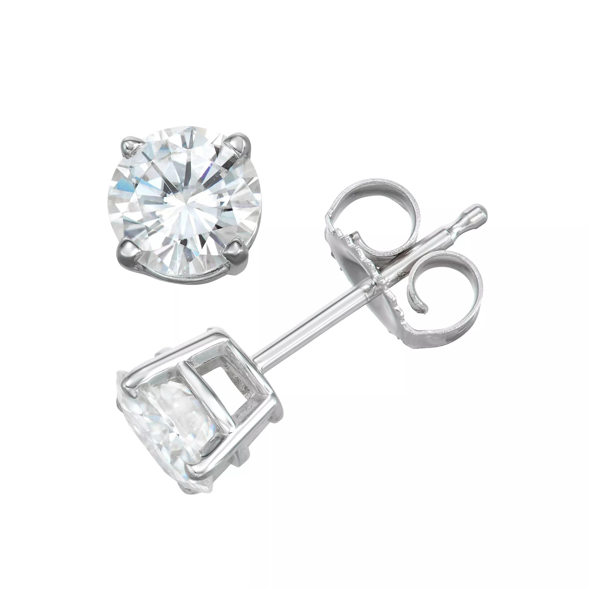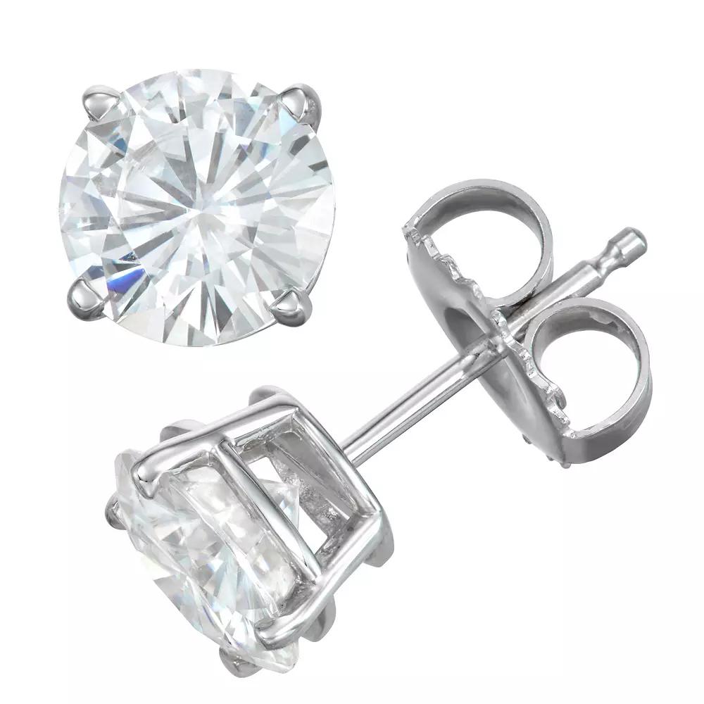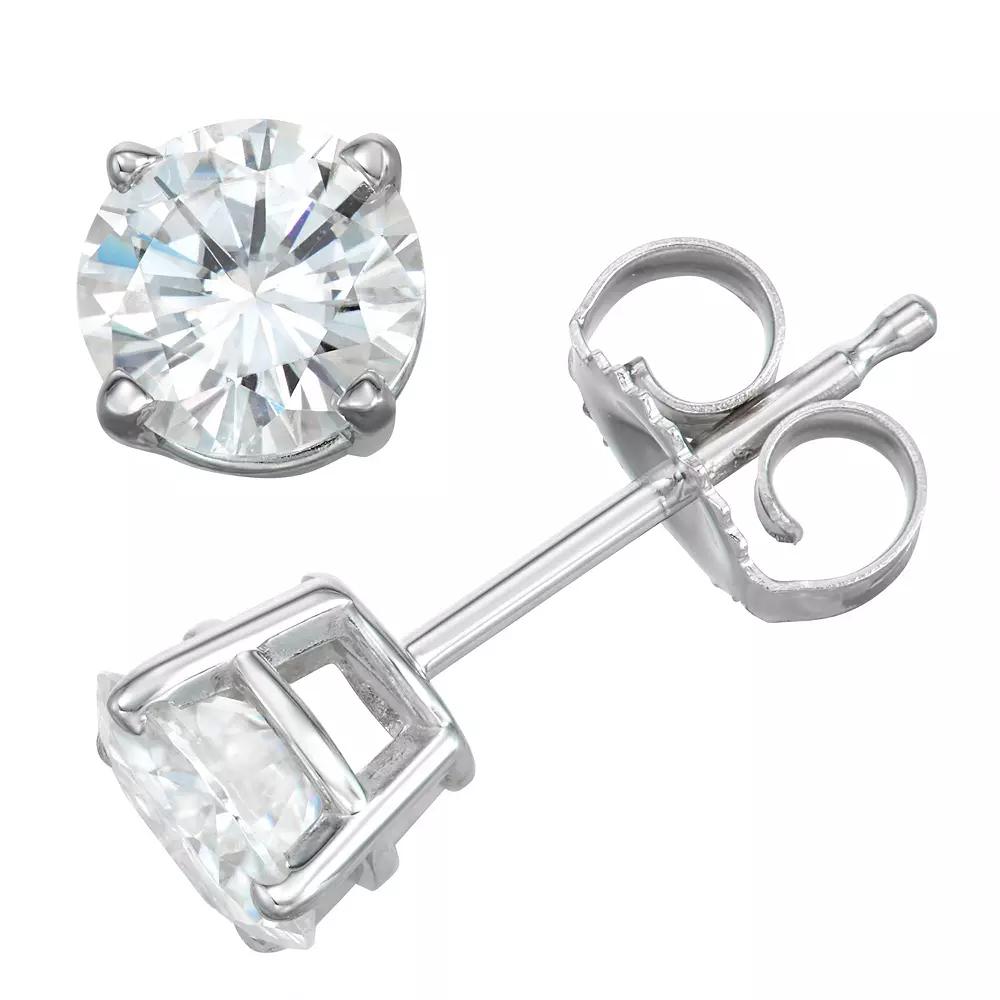 Simple yet stunning are these 14K White Gold 5-Millimeter Round Moissanite by Charles & Colvard® Earrings. Set in a traditional 4-prong friction back post style, these Charles & Colvard® earrings are a must-have for your wardrobe. The earrings feature a 1-carat total diamond equivalent weight. | Charles & Colvard 1 Ct. T.w. Lab Created Moissanite Stud Earrings, White