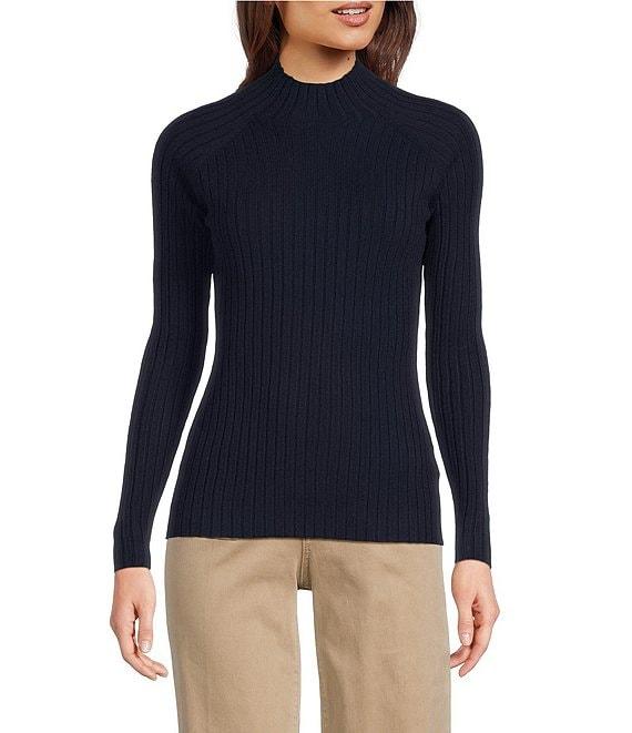Charlie B. Ribbed Knit Mock Neck Long Sleeve Sweater