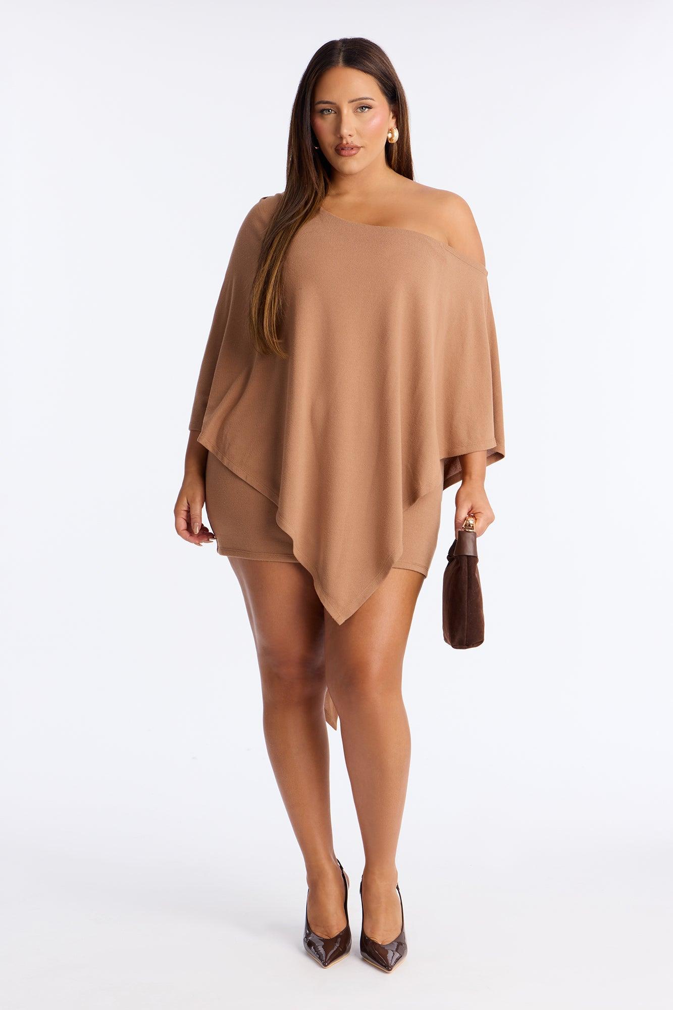 Charlotte Asymmetrical Sweater Mini Dress - Brown Female