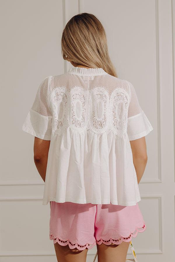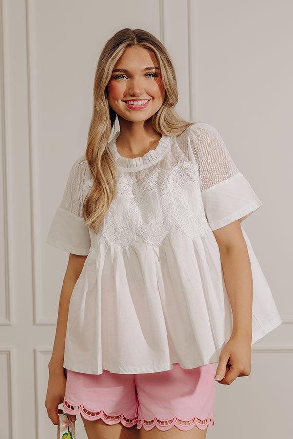- Add a touch of elegance to your OOTD with this darling top. Delicate lace accents with a mesh underlay make it the perfect piece to elevate any casual look. - Unlined lightweight material - Lace accents on the upper bodice and shoulders - Short sleeves - A round neckline with pleated detailing - A relaxed silhouette that ends in a straight hemline Measurements S : Bust 42", Hip 50", Length 22.5", Sleeve Length 10", Waist 46". M : Bust 44", Hip 52", Length 23", Sleeve Length 10.5", Waist 48". L : Bust 46", Hip 54", Length 24", Sleeve Length 10.5", Waist 50".