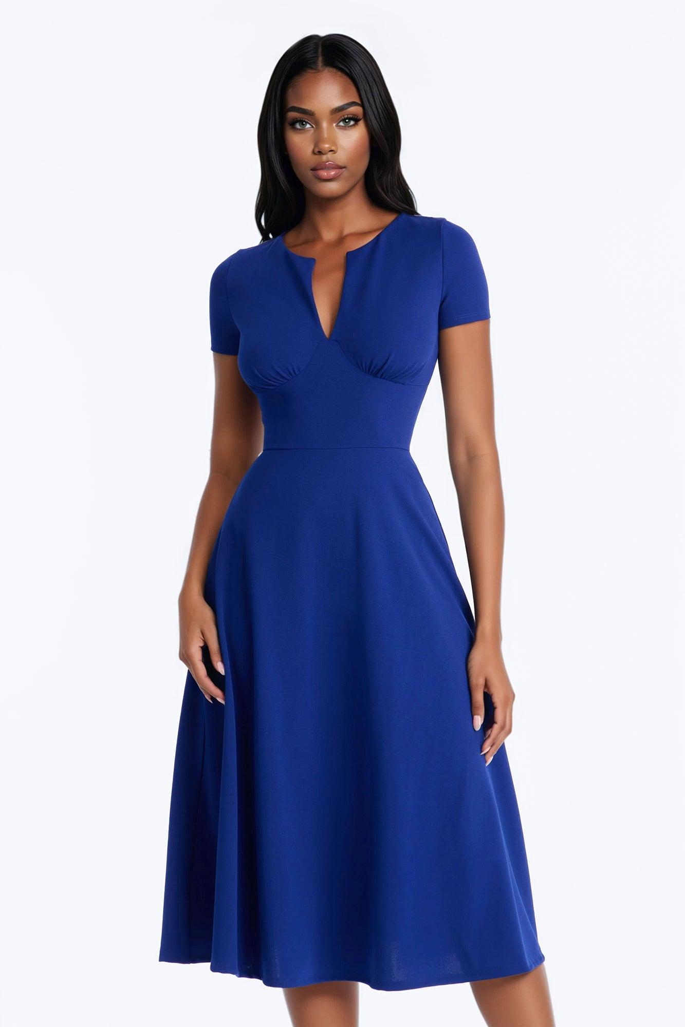 Charolette Short Sleeve Midi Dress - Navy Female
