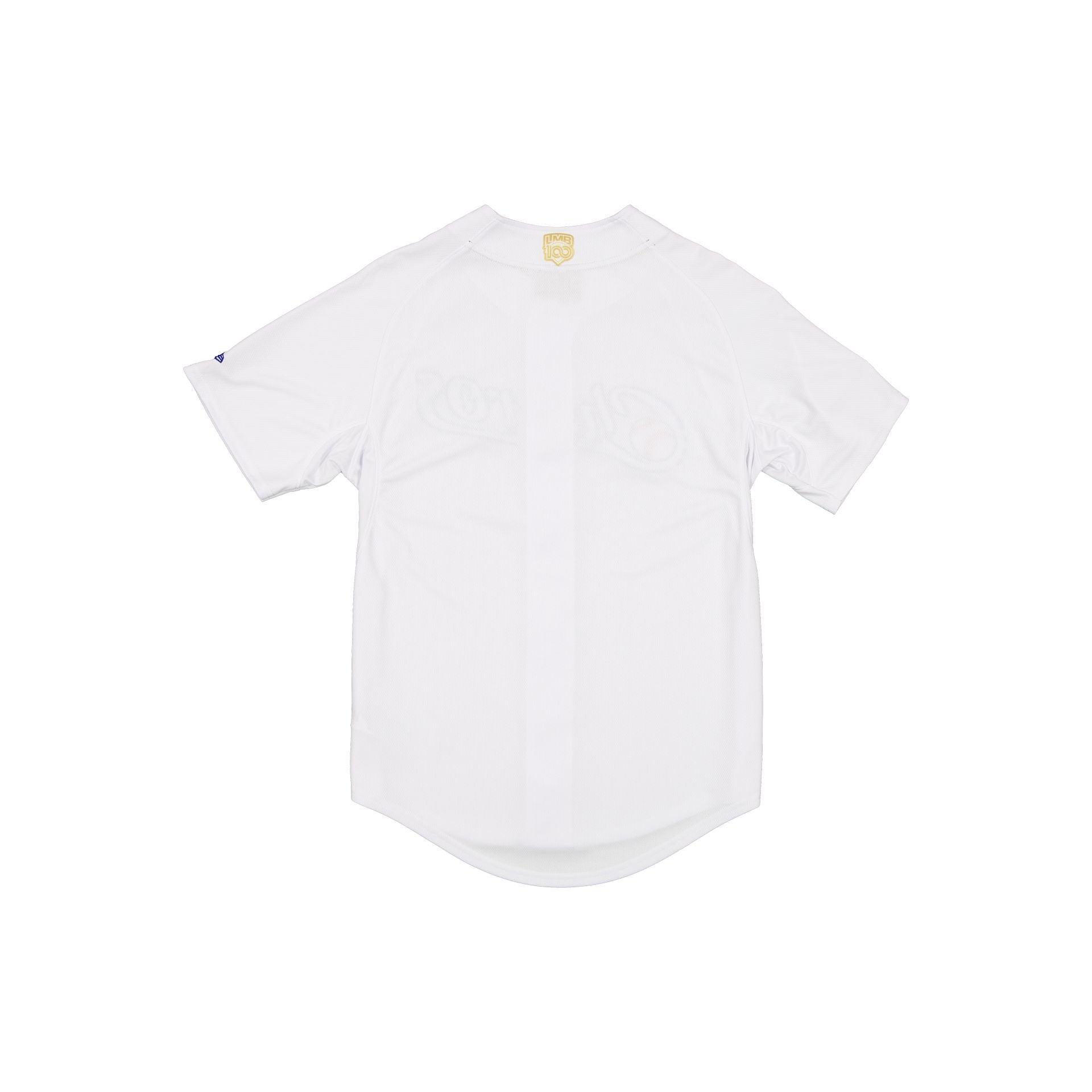 The Charros de Jalisco LMB 100th Anniversary Home Jersey features an embroidered Charros wordmark at the chest with a New Era Official Merchandise patch at the front hemline, a team logo at the right sleeve, and a LMB 100th Anniversary logo at the rear.Fabric: 100% Polyester
