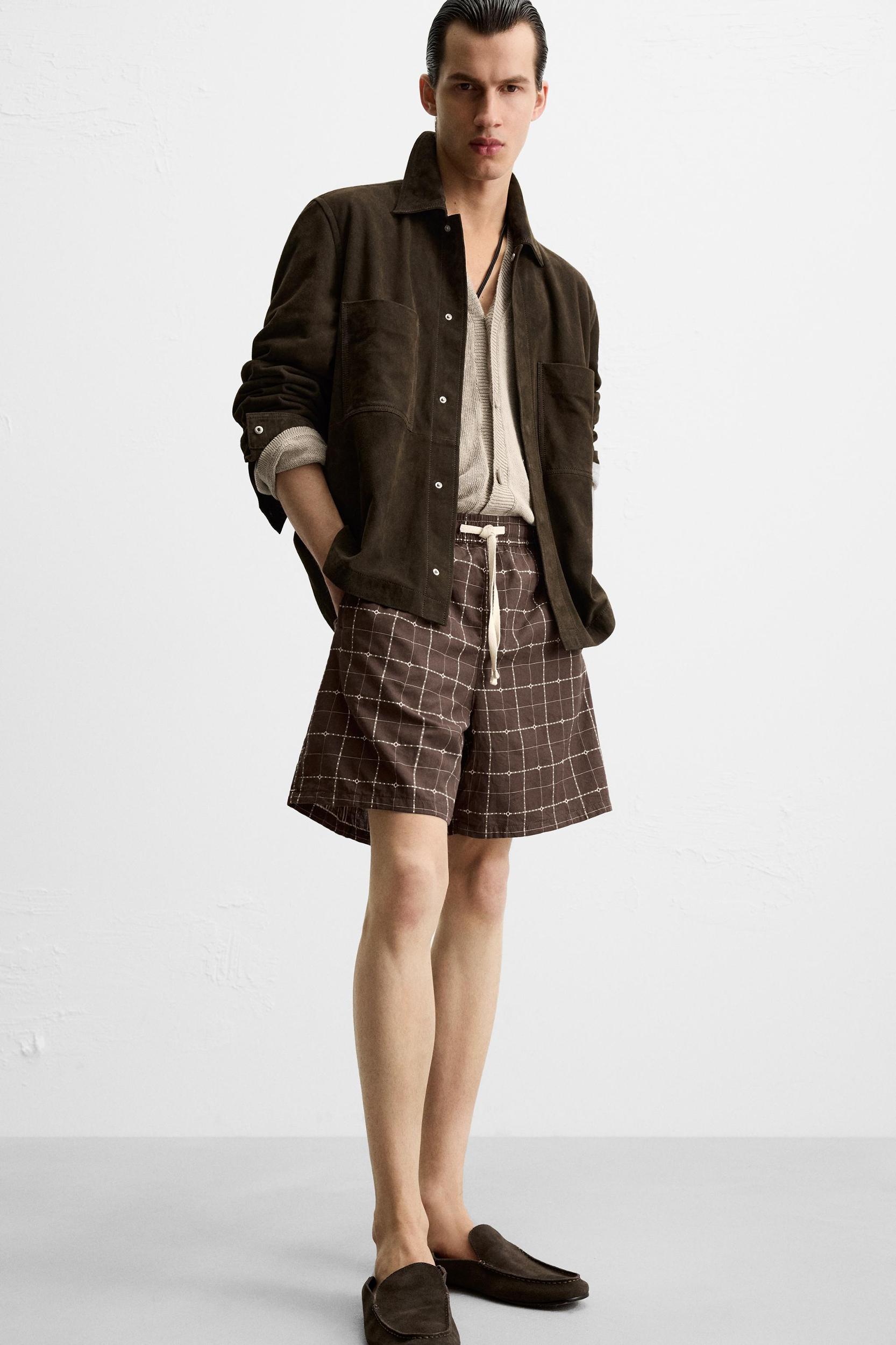 Relaxed fit shorts made of cotton fabric. Adjustable elastic waistband with drawstring. Welt pockets in front and back.