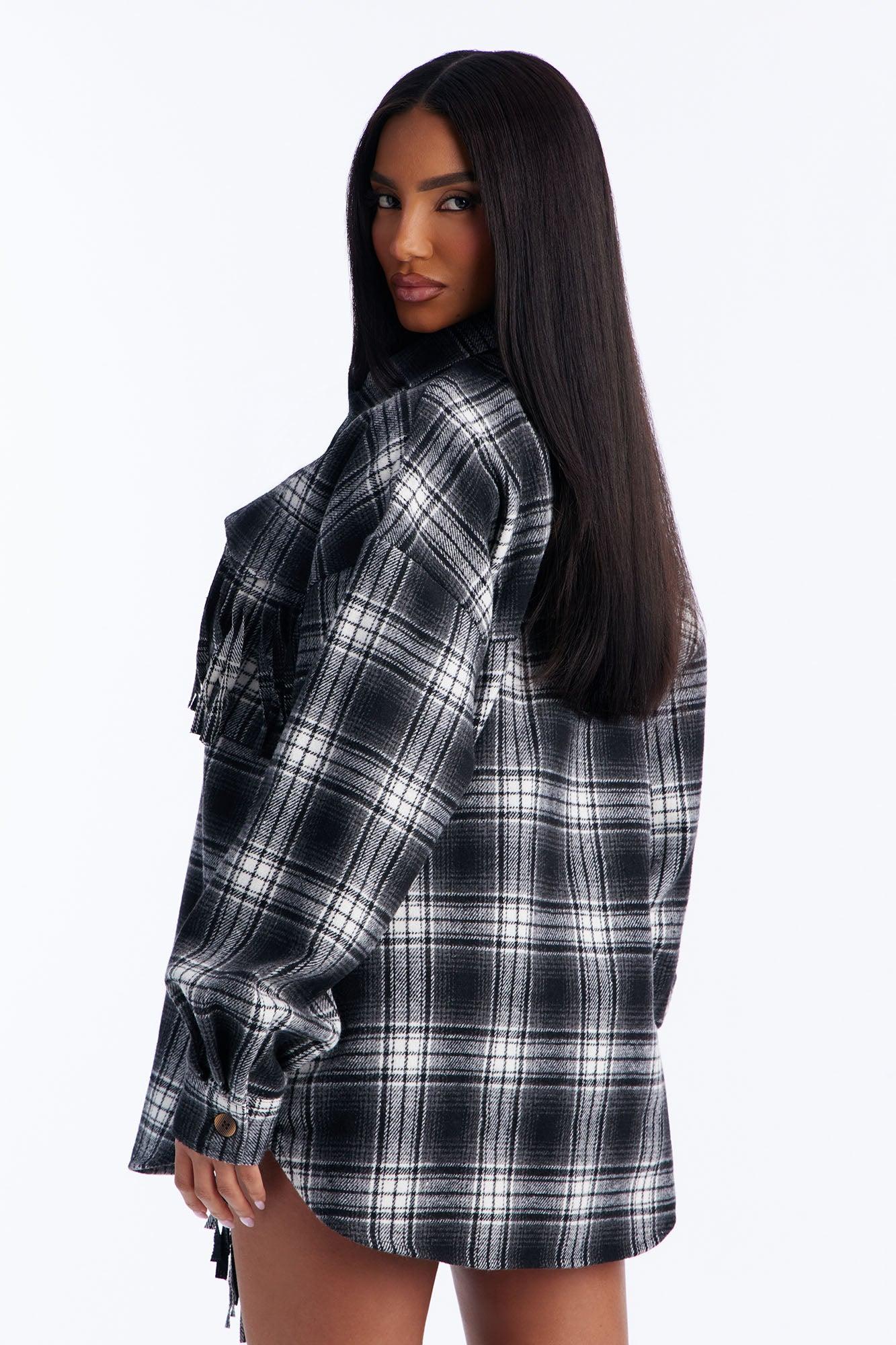 Checked Out Plaid Flannel Fringe Skort Set - Black/combo Female