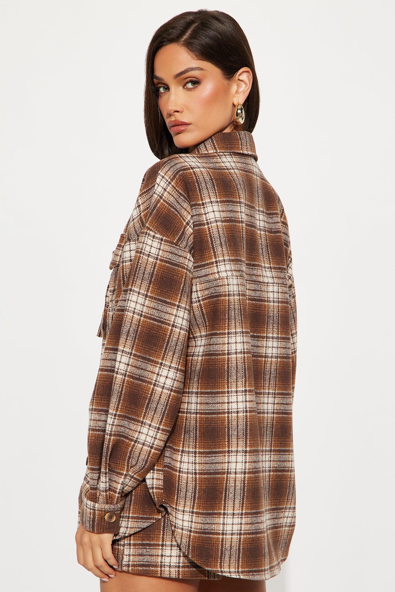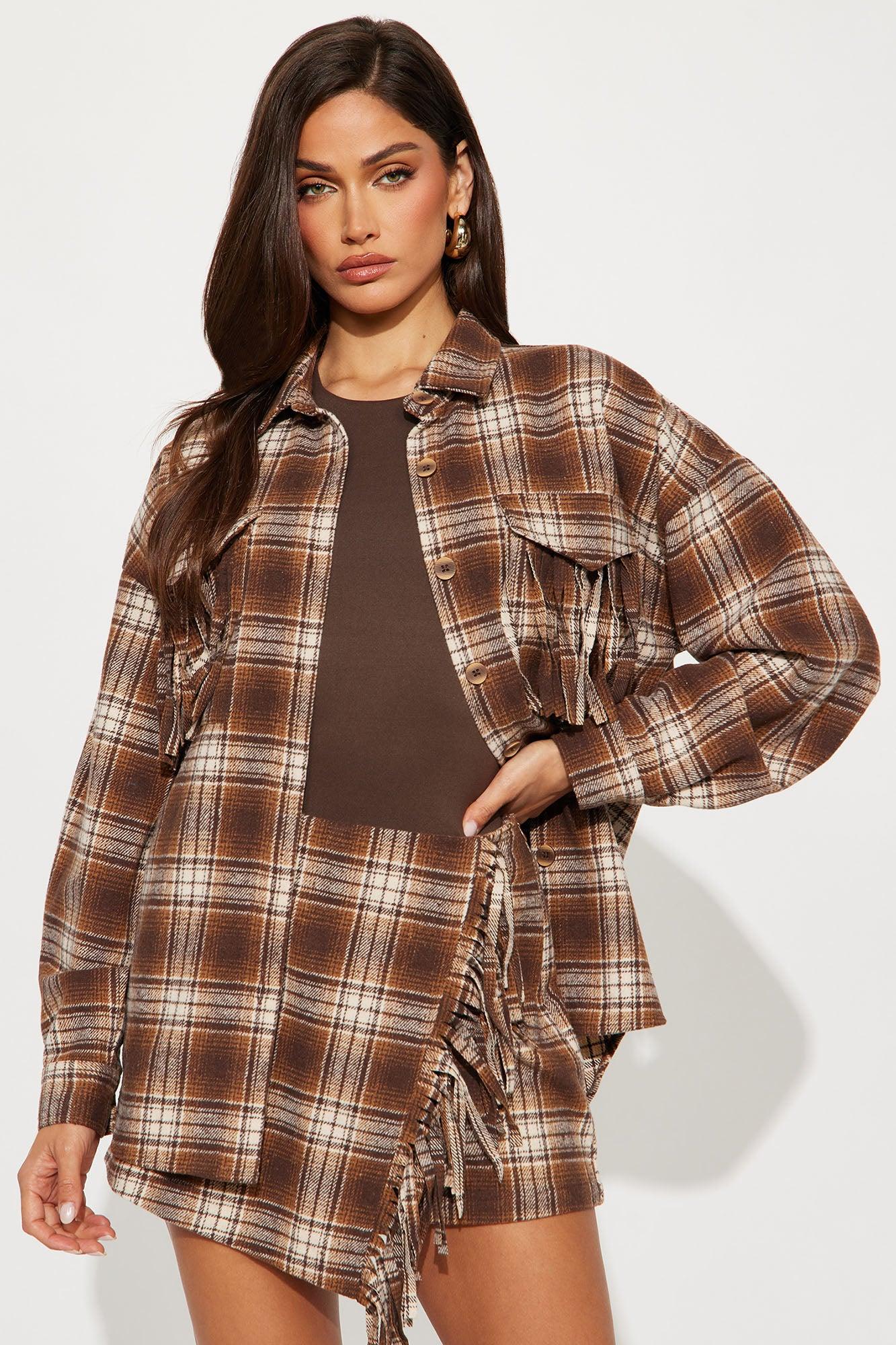 Checked Out Plaid Flannel Fringe Skort Set - Brown/combo Female